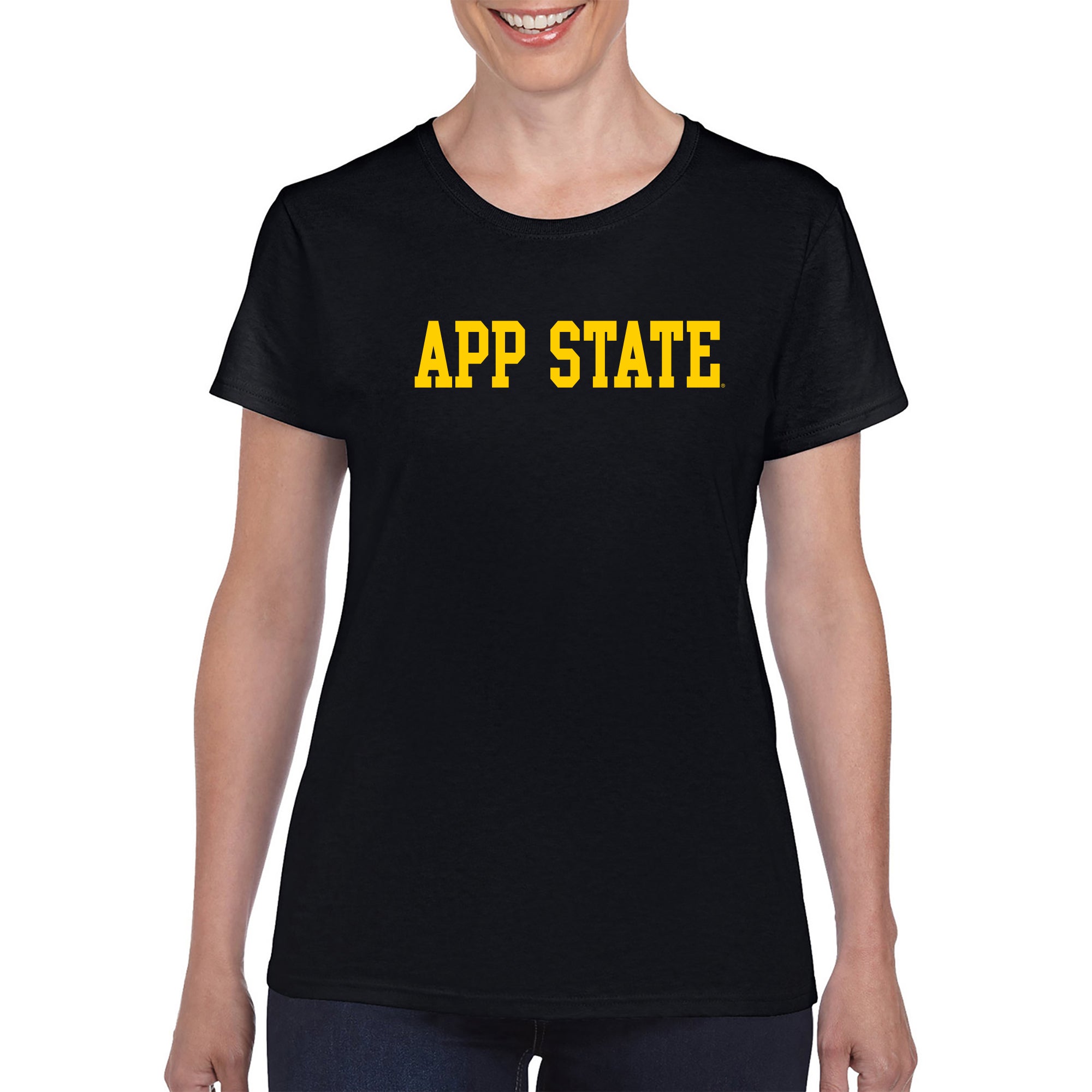 Appalachian State University Mountaineers Basic Block Cotton Women's T-Shirt - Black