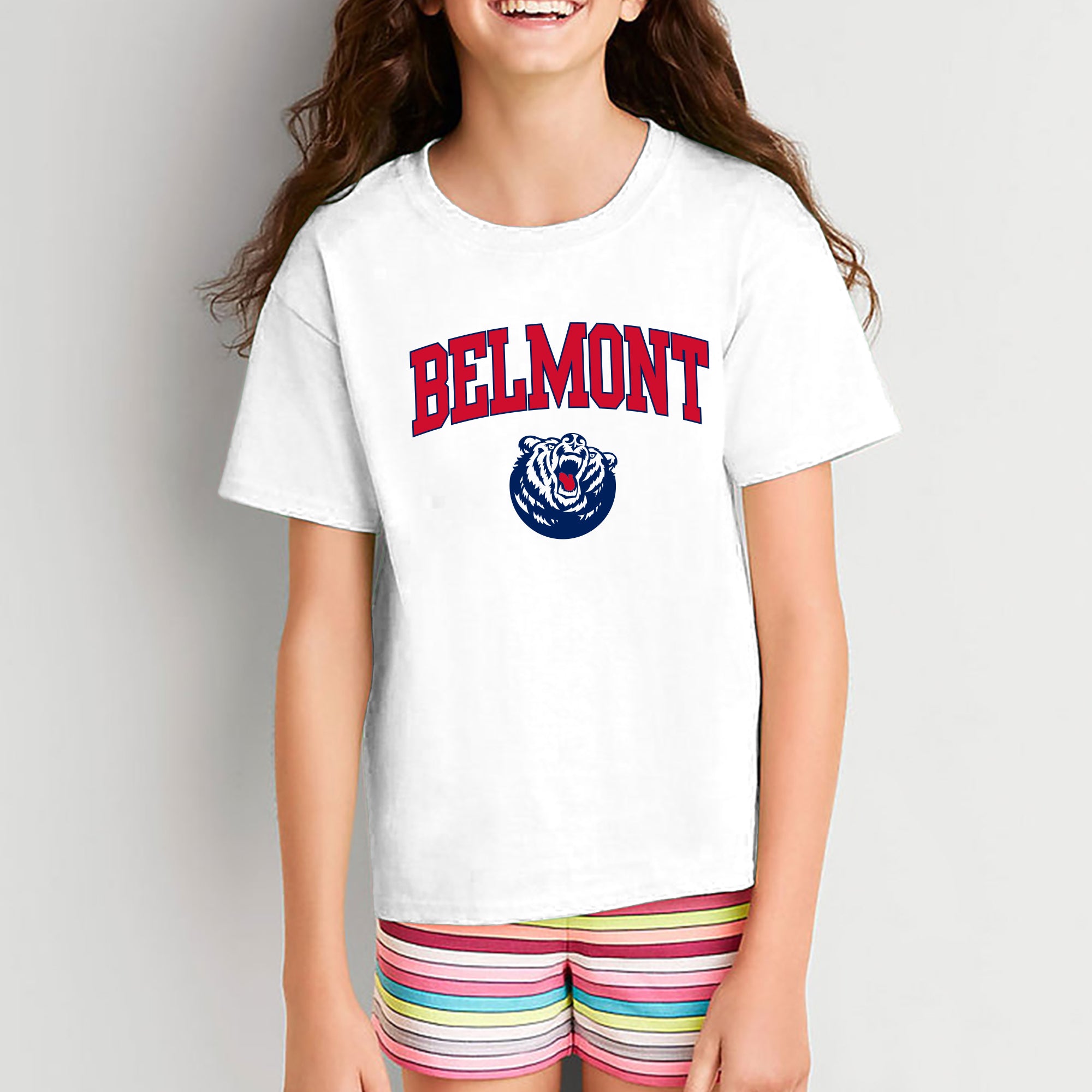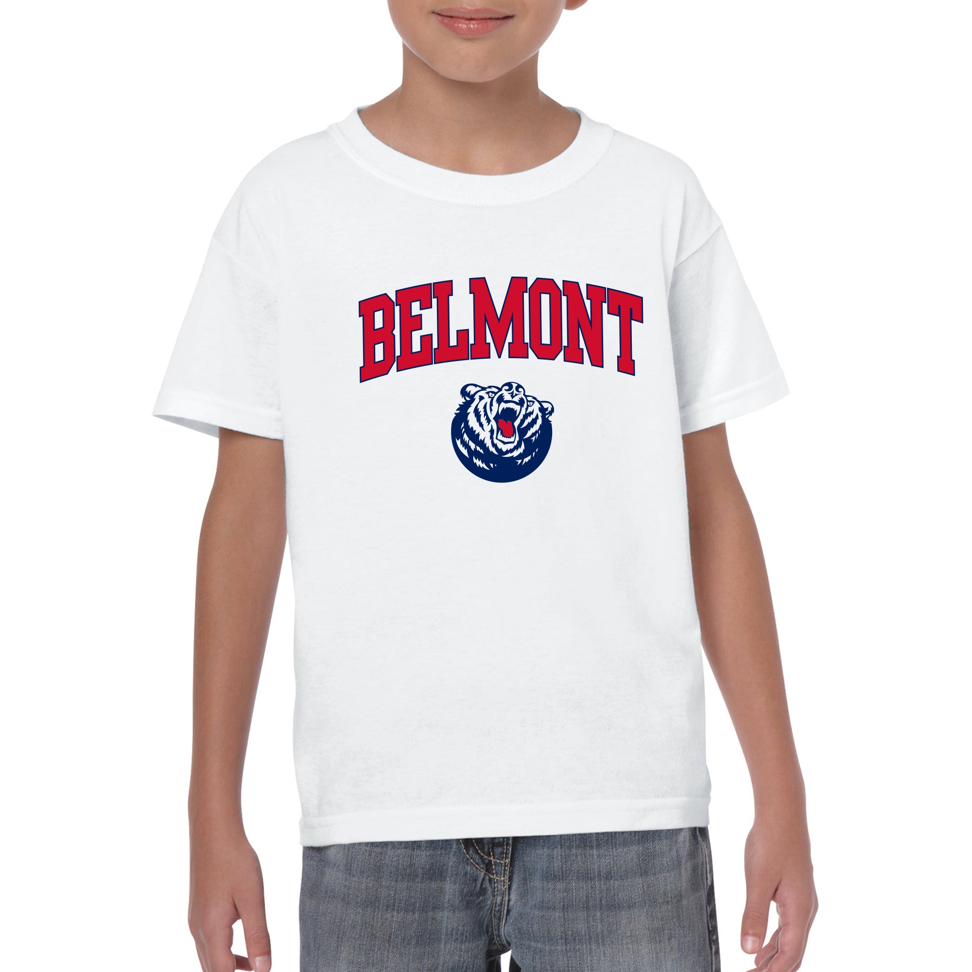 Belmont University Bruins Arch Logo Youth Basic Cotton Short Sleeve T Shirt - White