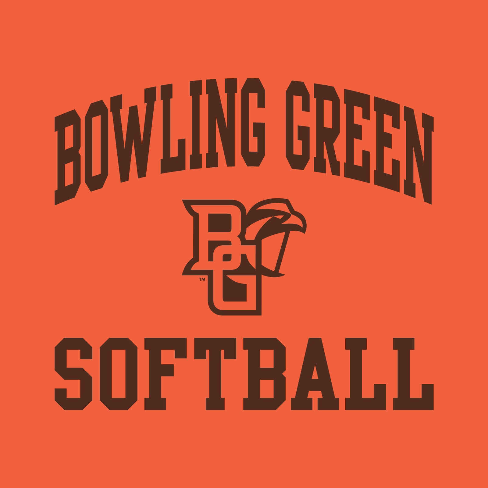 Bowling Green State University Falcons Arch Logo Softball Basic Cotton Short Sleeve T Shirt - Orange