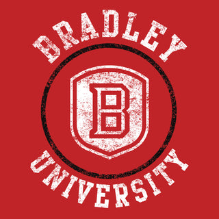 Bradley University Braves Distressed Circle Logo Basic Cotton Short Sleeve T Shirt - Red