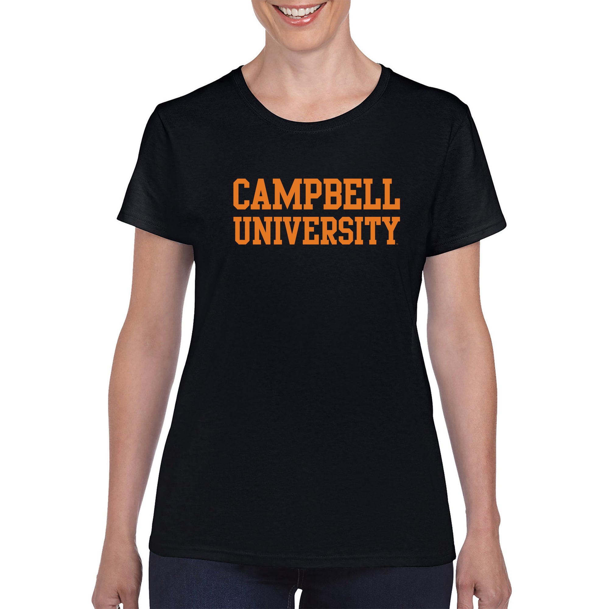Campbell University Fighting Camels Basic Block Cotton Women's Short Sleeve T-Shirt - Black