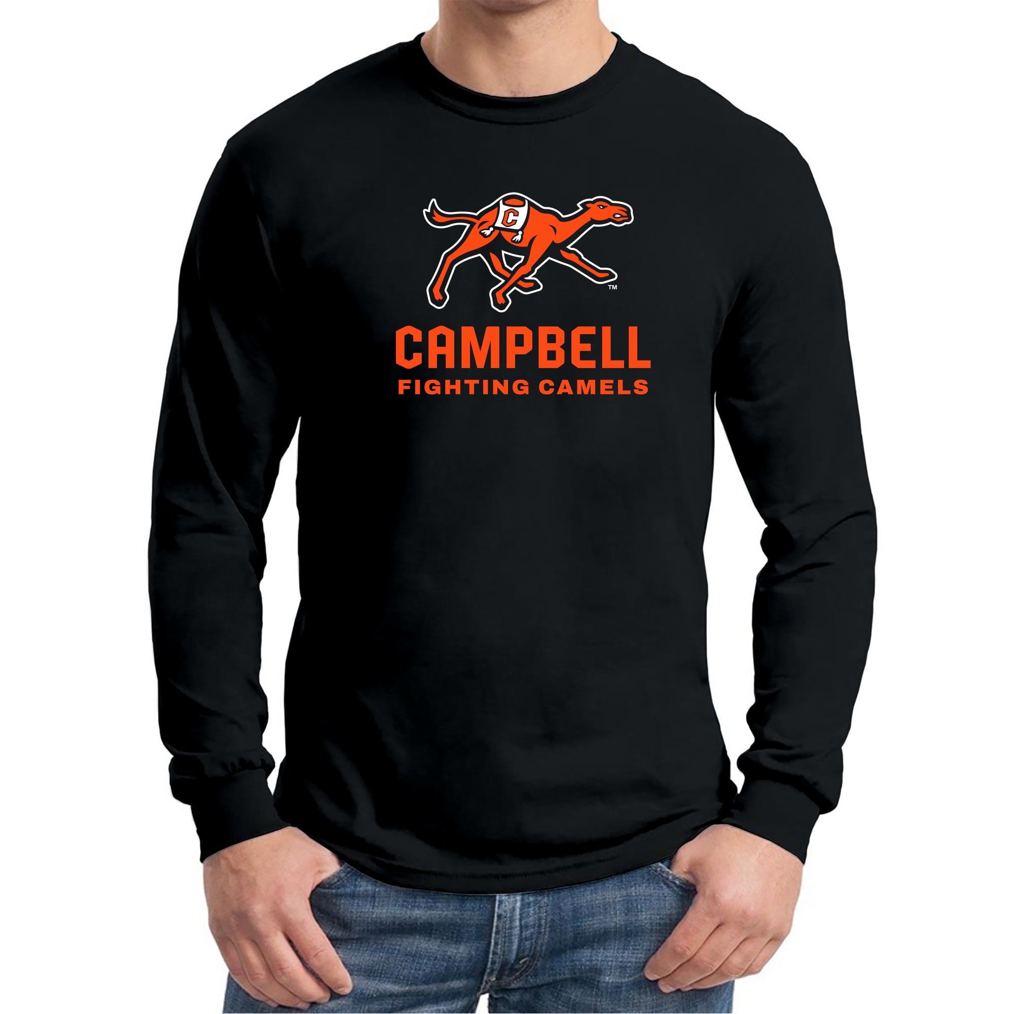 Campbell University Fighting Camels Primary Logo Basic Cotton Long Sleeve T-Shirt - Black