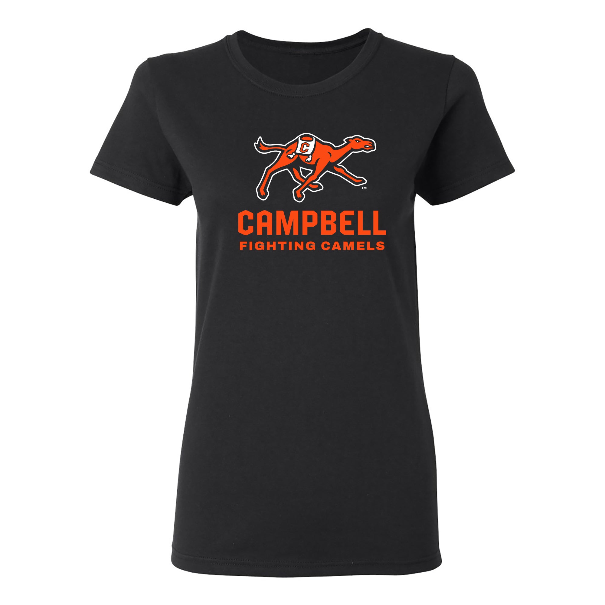 Campbell University Fighting Camels Primary Logo Basic Cotton Women's Short Sleeve T-Shirt - Black