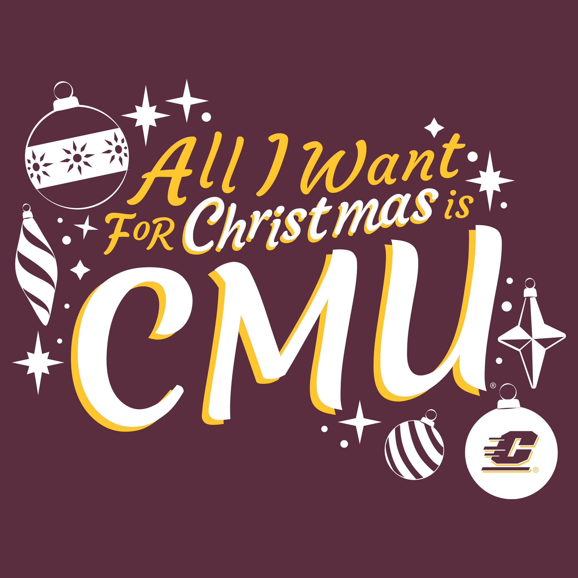 Central Michigan Chippewas All I Want For Christmas Is CMU Crewneck Sweatshirt - Maroon