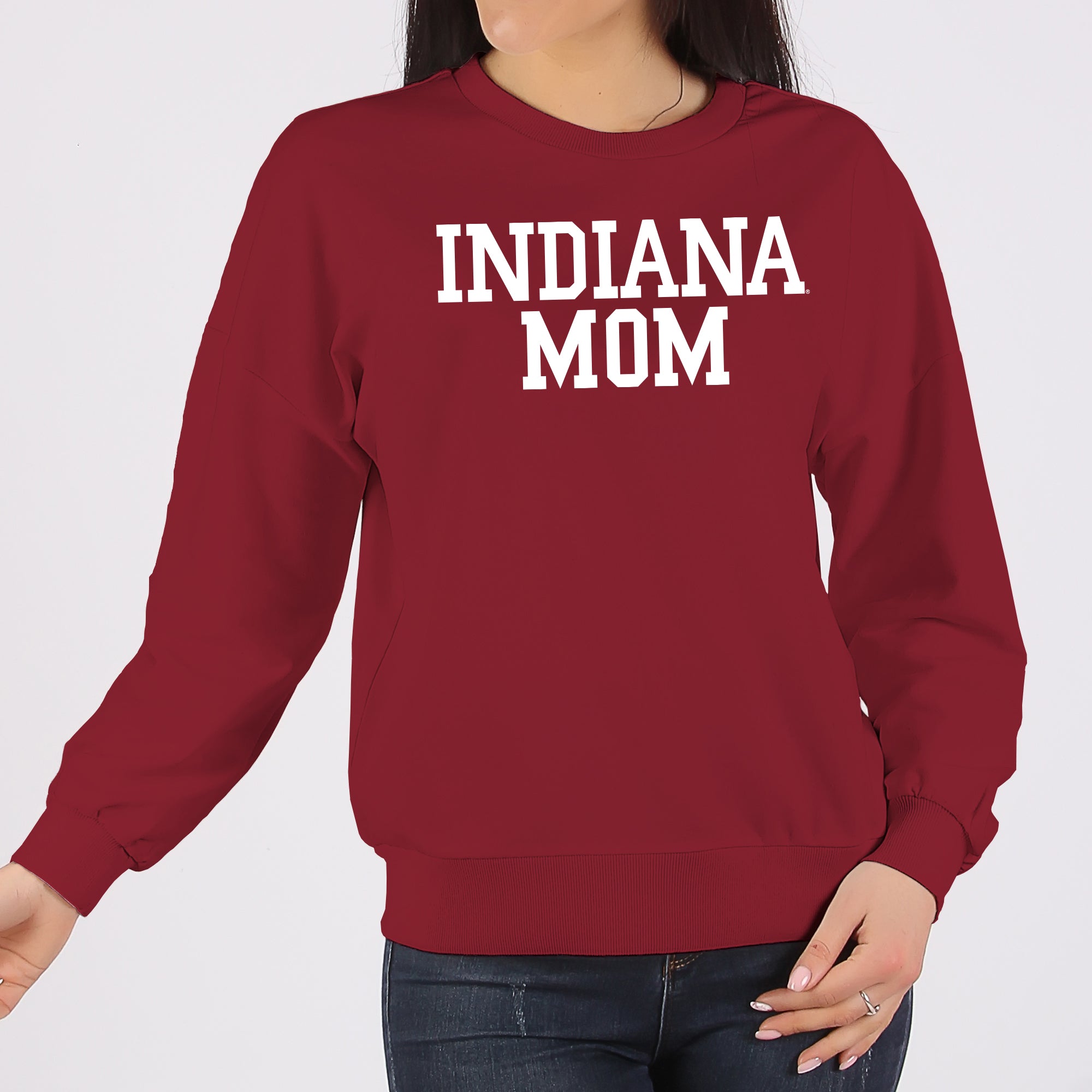 Indiana Hoosiers Basic Block Mom Crewneck Sweatshirt - Cardinal