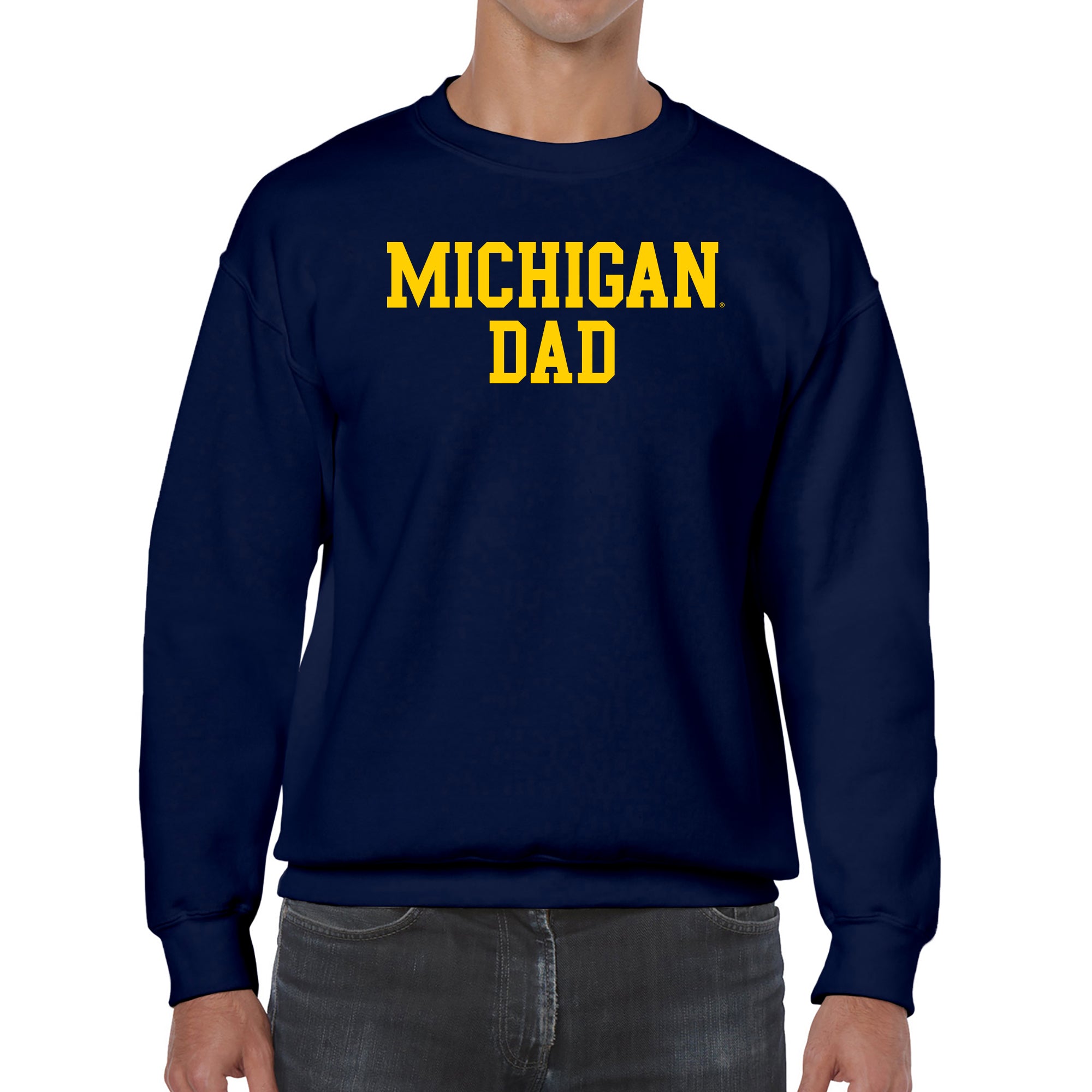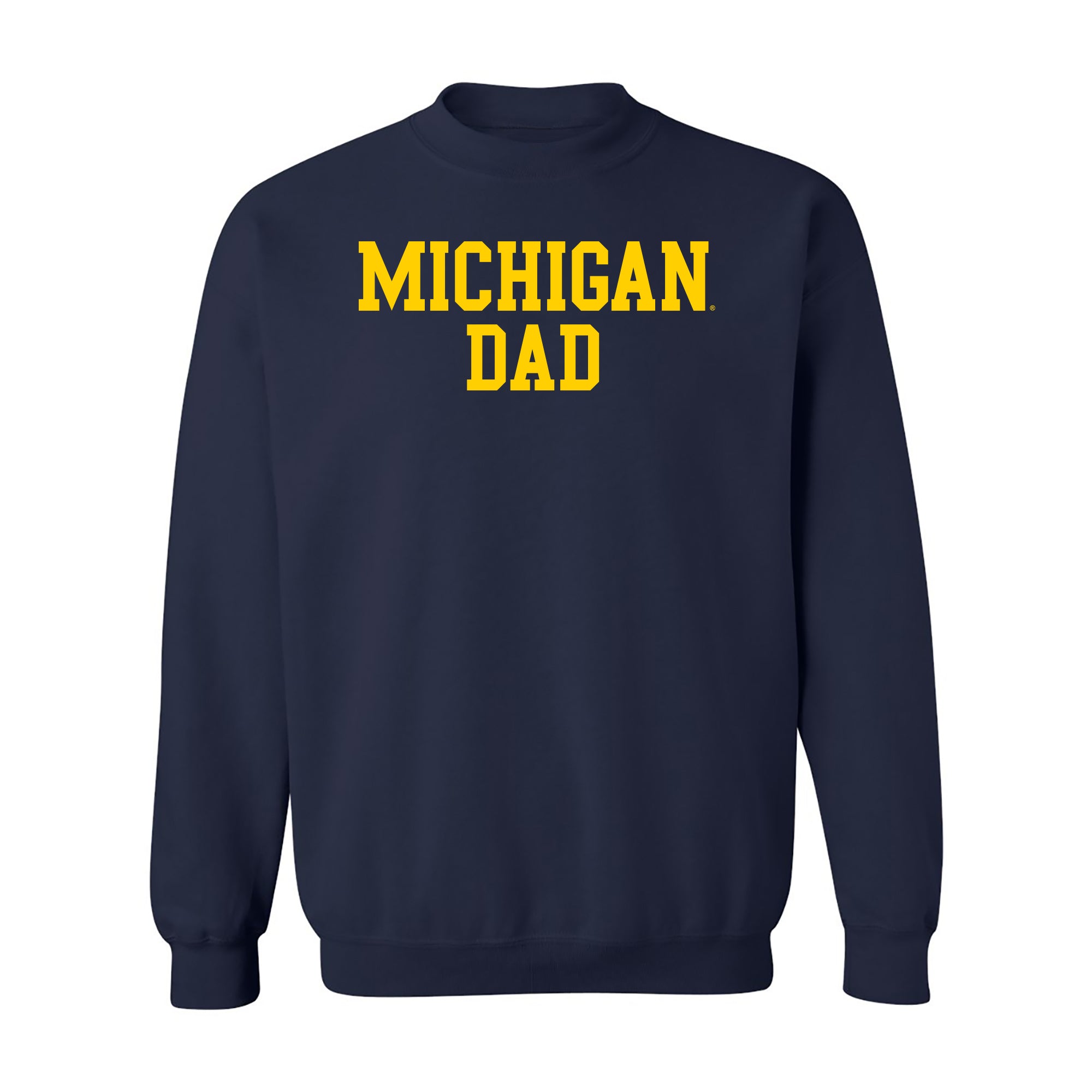 - Let everyone know who the ultimate Michigan fan is with the Michigan Wolverines Basic Block Dad sweatshirt in navy! Featuring a classic block "Michigan" print across the chest, this sweatshirt is simple, bold, and perfect for cheering on the Wolverines. Comfortable and timeless, it's a must-have for any proud fan—or their biggest supporter!