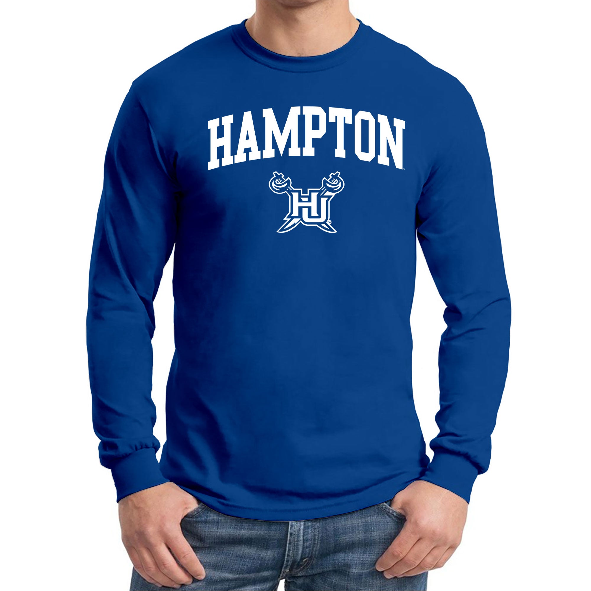 Hampton University Pirates Arch Logo Long Sleeve T-Shirt - Royal