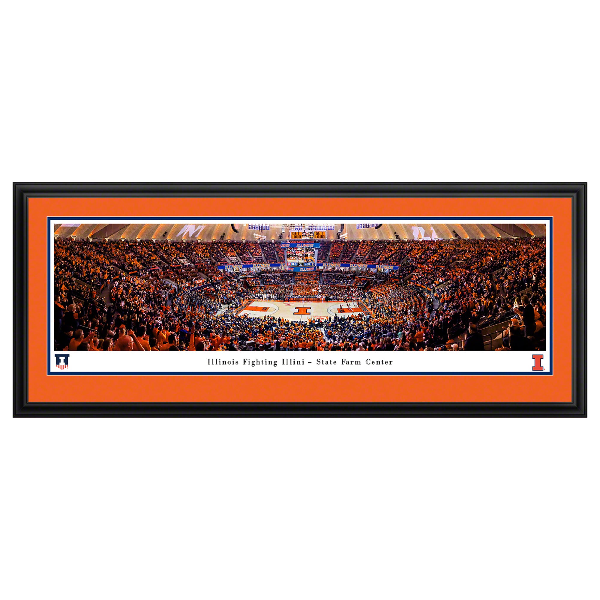This panoramic photo captures the action in front of a sold-out crowd at State Farm Center as the #10 ranked Fighting Illini hosted Big 10 rival, the Indiana Hoosiers. This century-old rivalry began in 1906 and has given fans many memorable games including this one, where fans saw the Illini surge ahead in the final minute to claim a 70-62 victory over the Hoosiers.