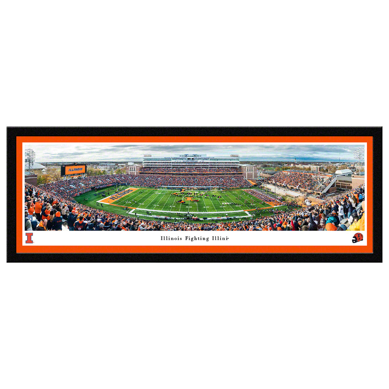 This panoramic photo captures the fan excitement at Memorial Stadium in Champaign, Illinois as the Fighting Illini football team took the field prior to their matchup with the Michigan State Spartans. Memorial Stadium was built in 1923 as a memorial to the Illinois men and women who gave their lives for their country during World War I. Renovations over the years have updated the stadium to today's standards and increased the capacity to 60,670 fans.
