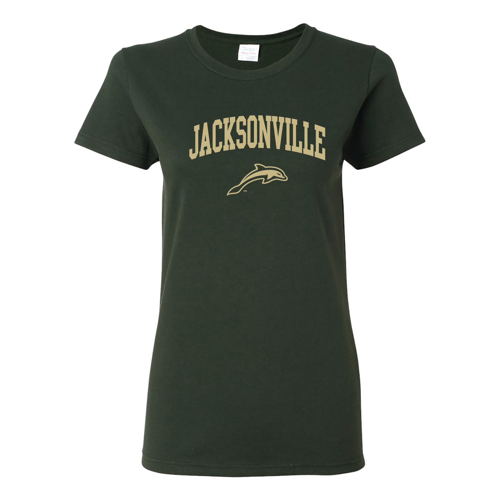 Jacksonville University Dolphins Arch Logo Cotton Womens T-Shirt - Forest