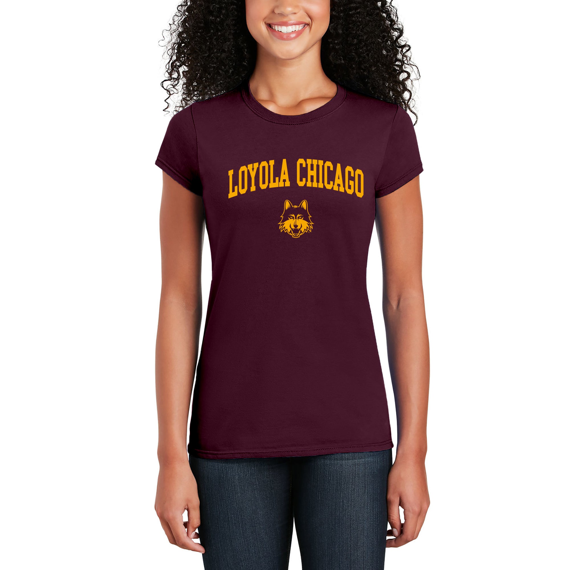 Loyola Chicago Ramblers Arch Logo Women's T Shirt - Maroon