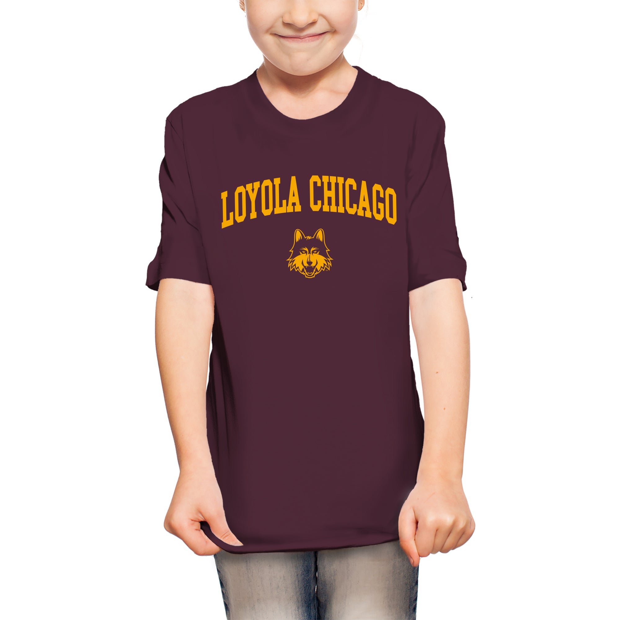 Loyola Chicago Ramblers Arch Logo Youth T Shirt - Maroon