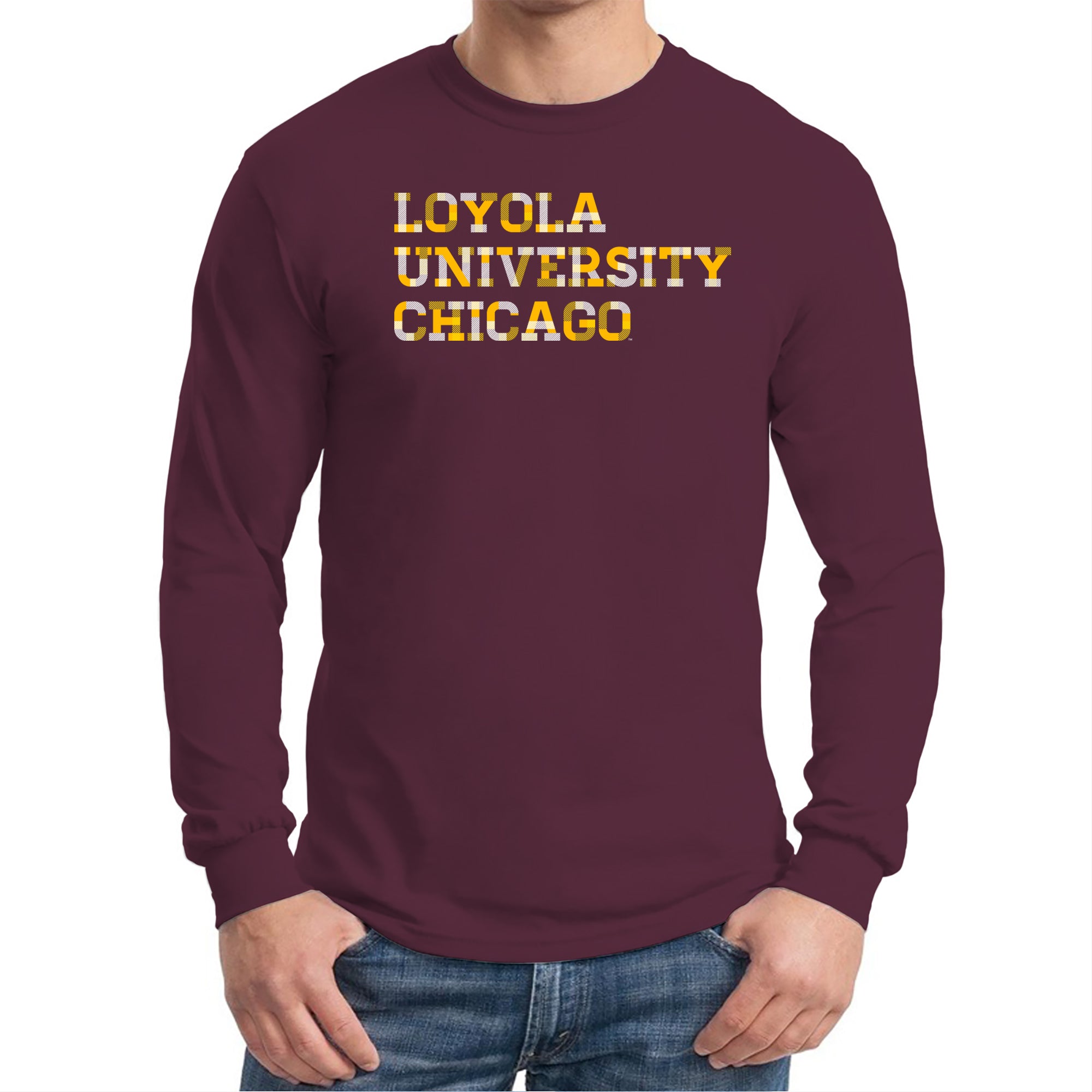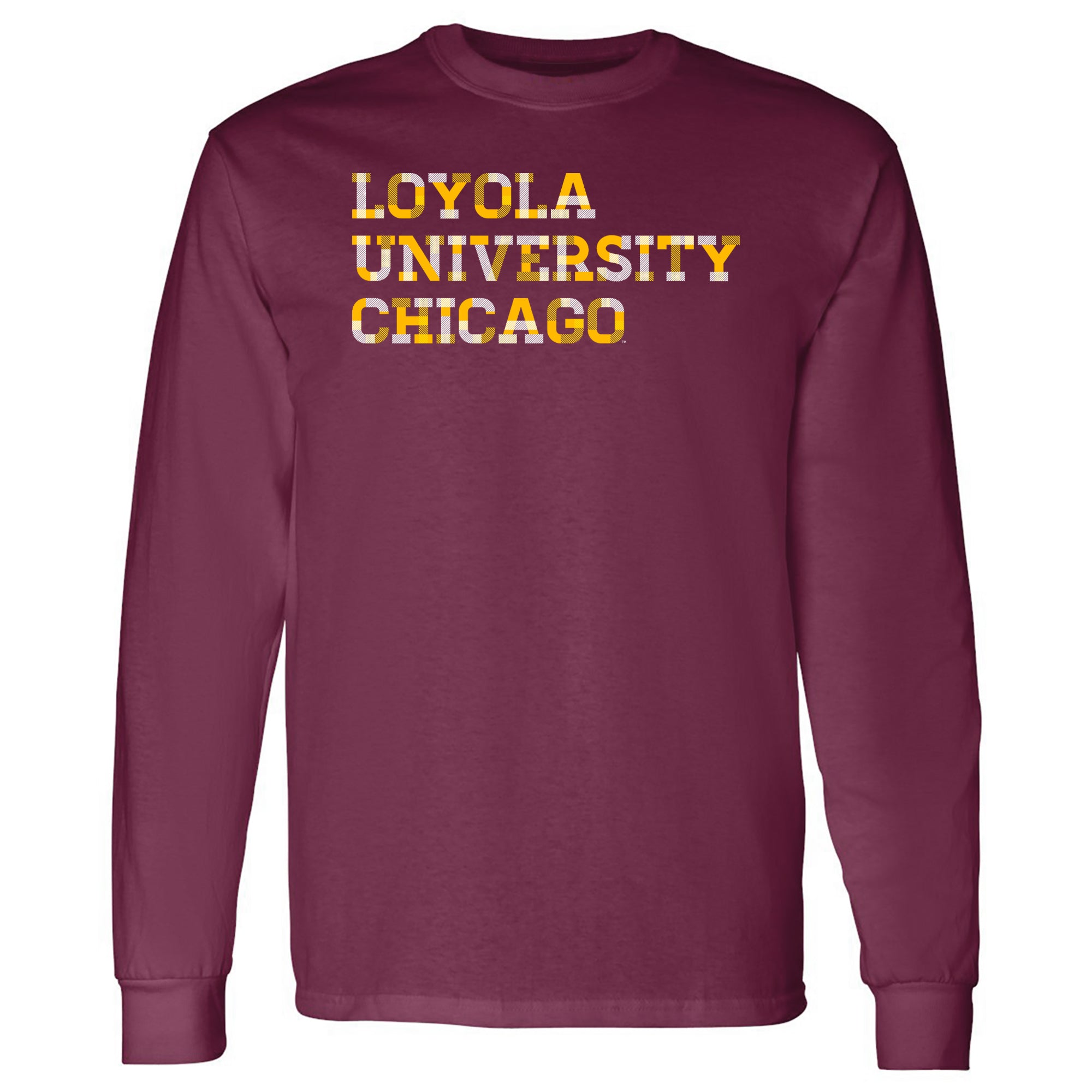 Loyola Chicago Ramblers Patchwork Cotton Long Sleeve T Shirt - Maroon