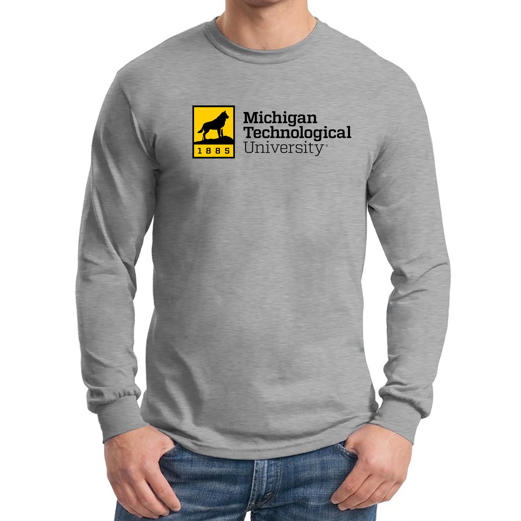 Michigan Technological University Huskies Institutional Logo Cotton Long Sleeve T-Shirt - Sport Grey