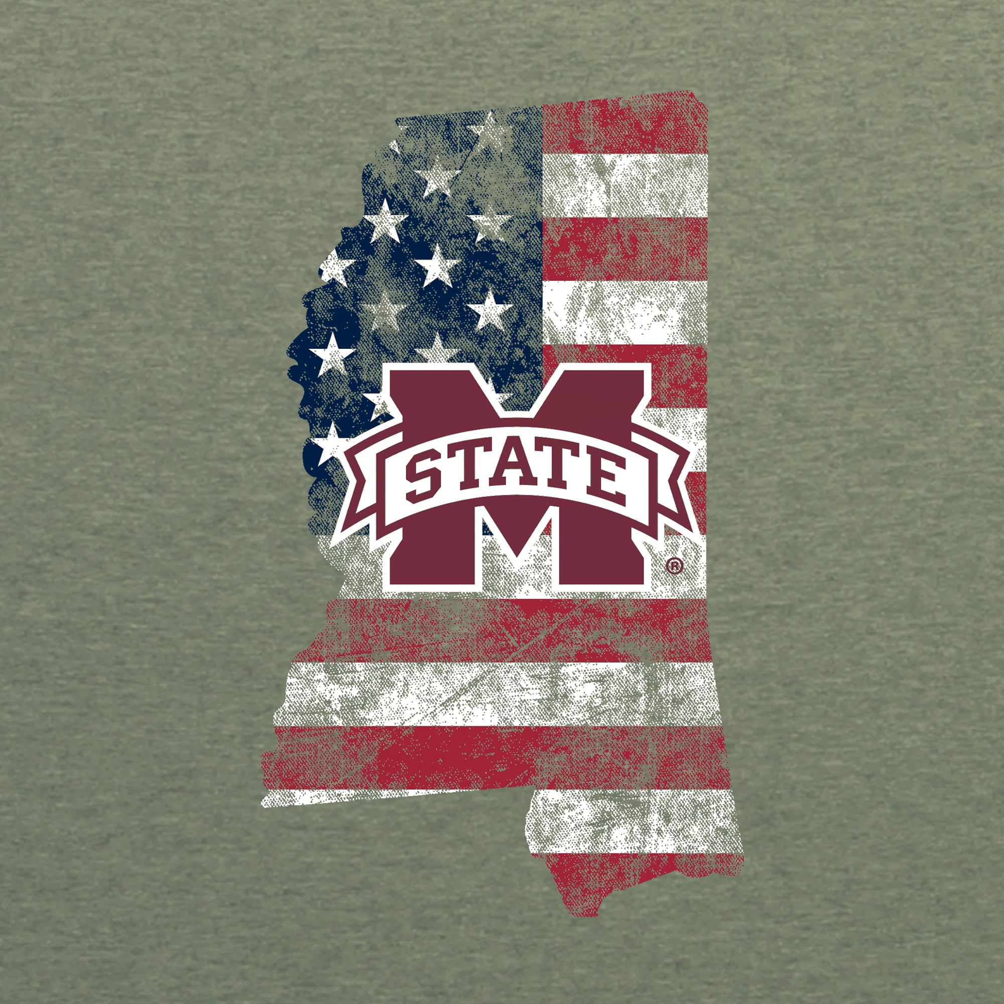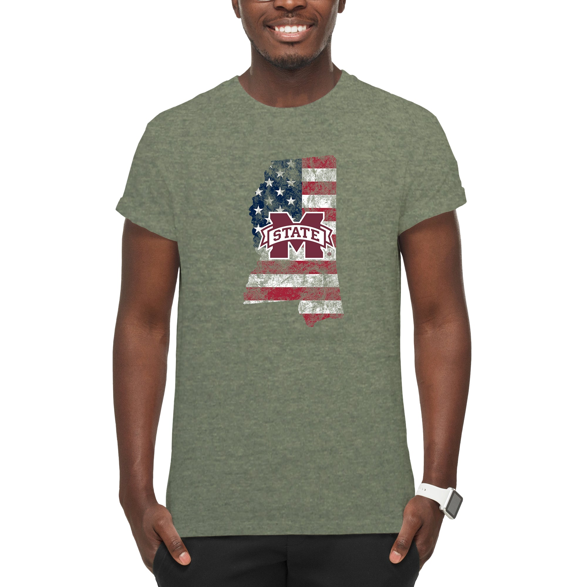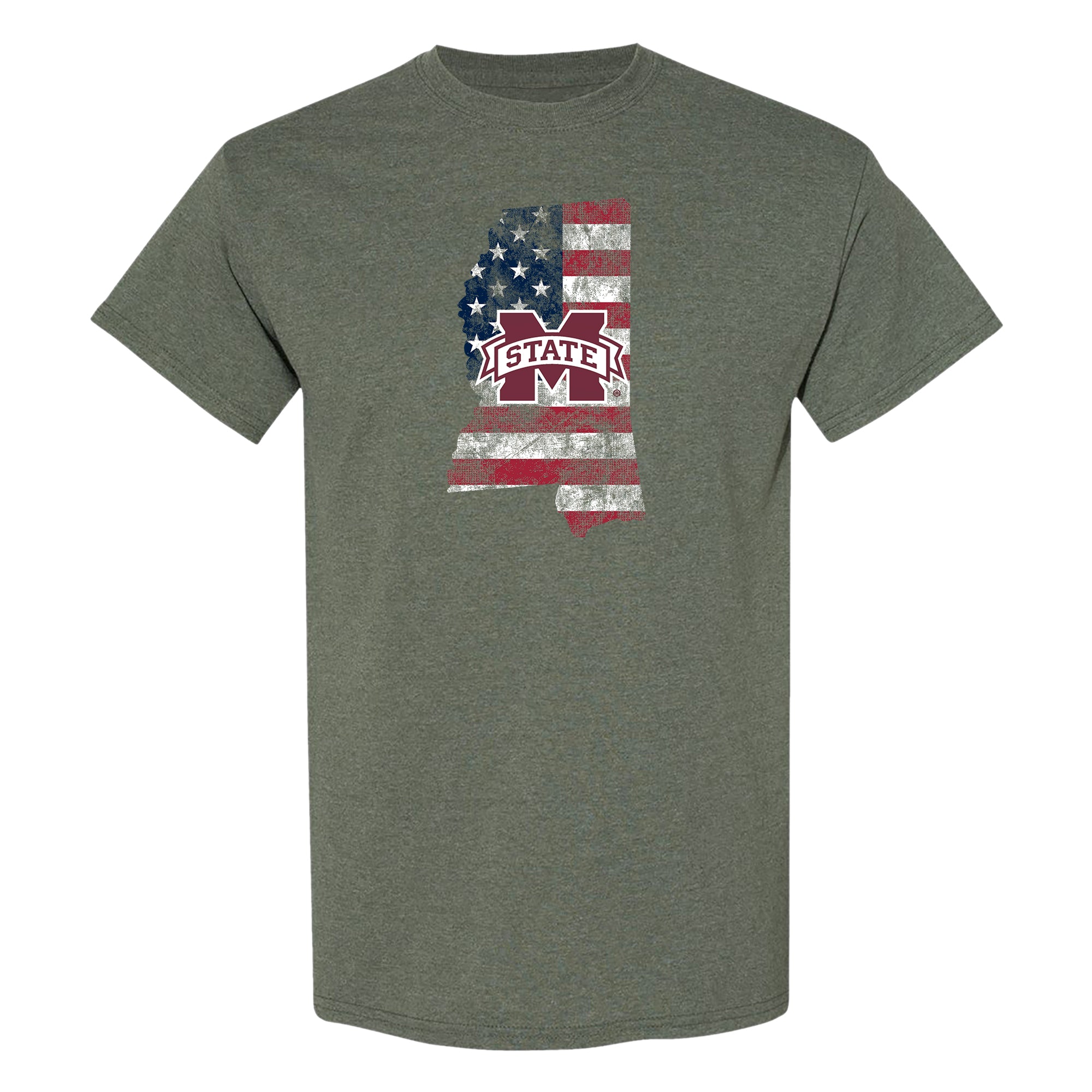 Mississippi State Patriotic State Silhouette T-Shirt - Heather Military