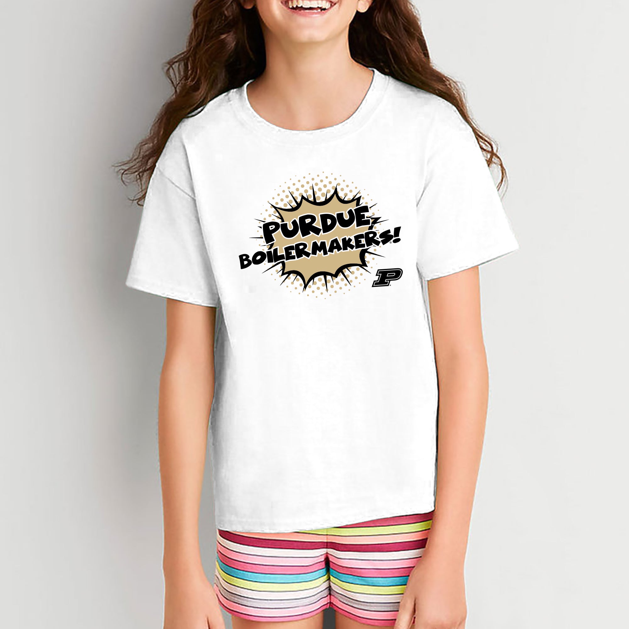 Purdue University Boilermakers Comic Blast Youth Basic Cotton Short Sleeve Tee - White