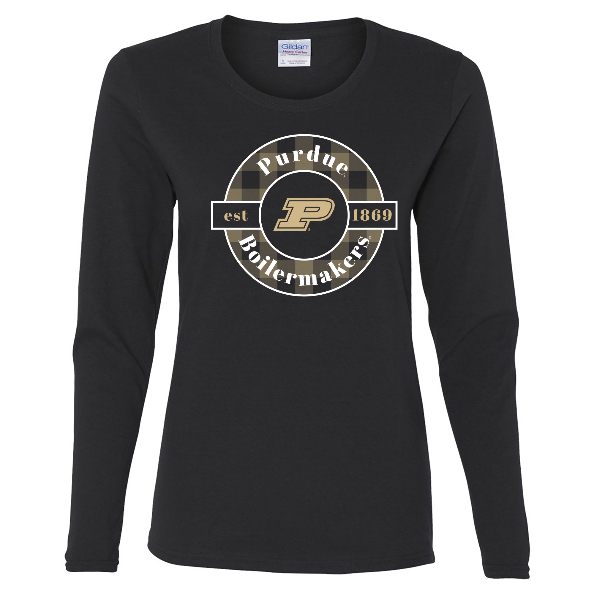 Purdue Plaid Circle Womens Long Sleeve - Black