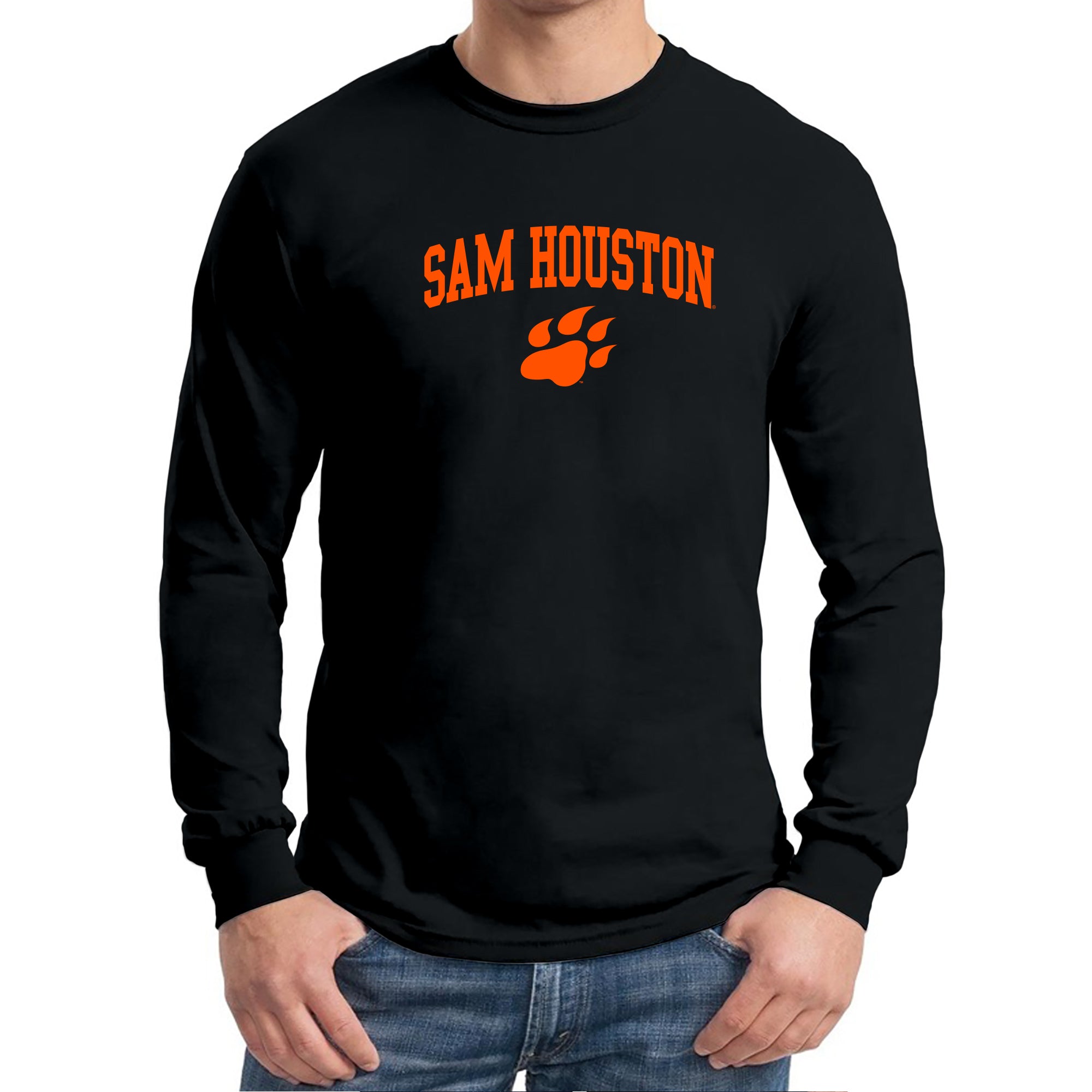 Sam Houston State University Bearkats Arch Logo Long Sleeve T Shirt - Black
