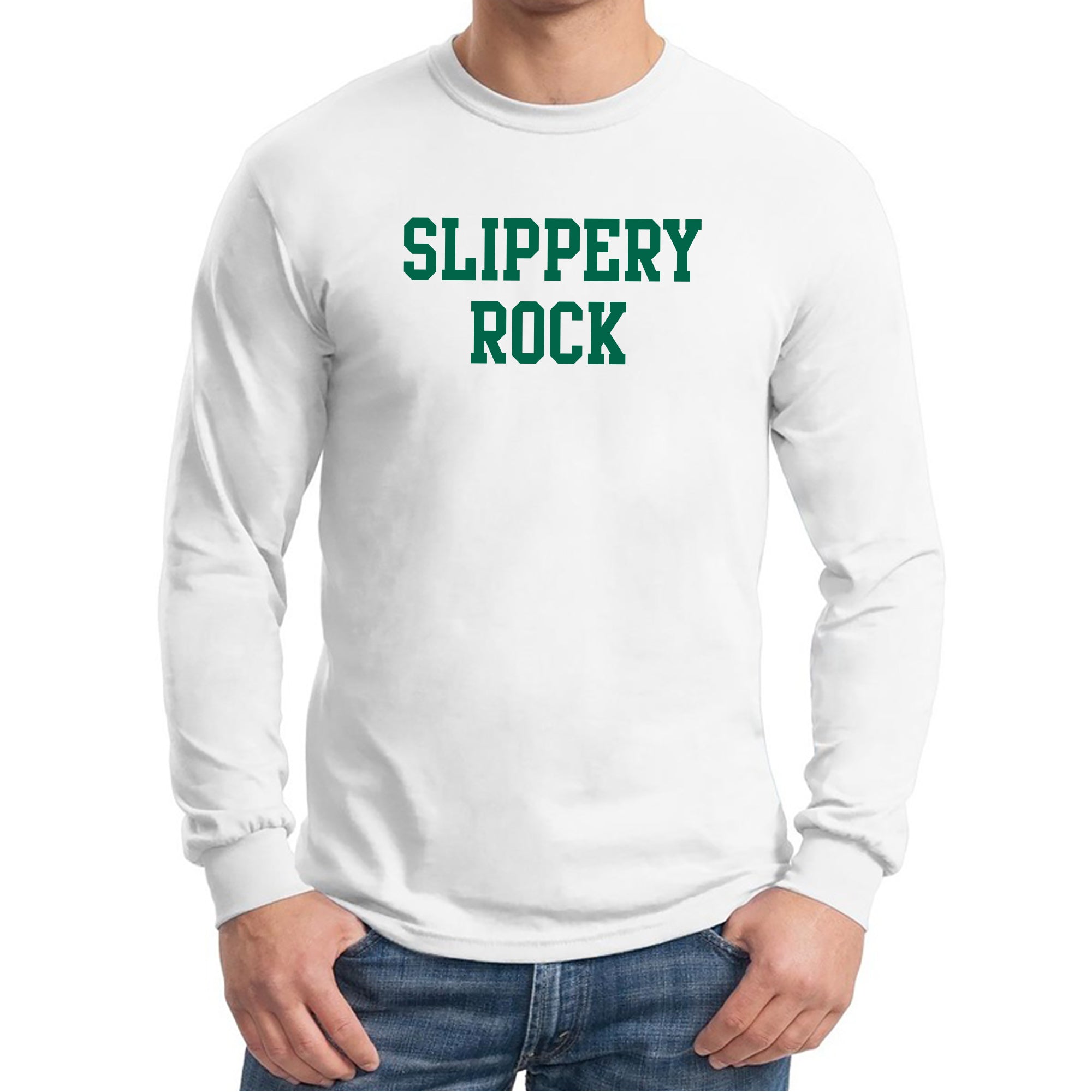 Slippery Rock University The Rock Basic Block Long Sleeve T Shirt - White