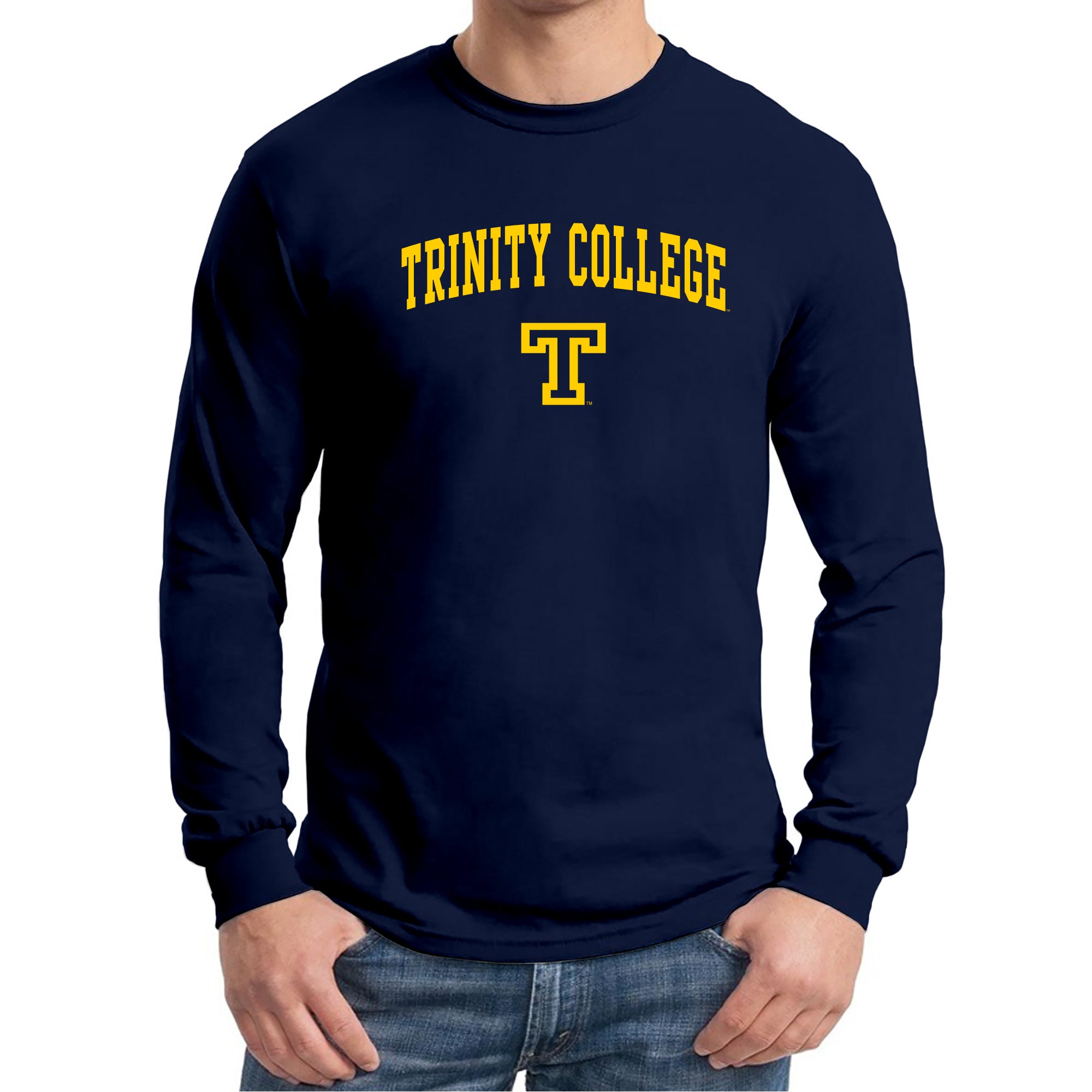 Trinity College Bantams Arch Logo Basic Cotton Long Sleeve T Shirt - Navy