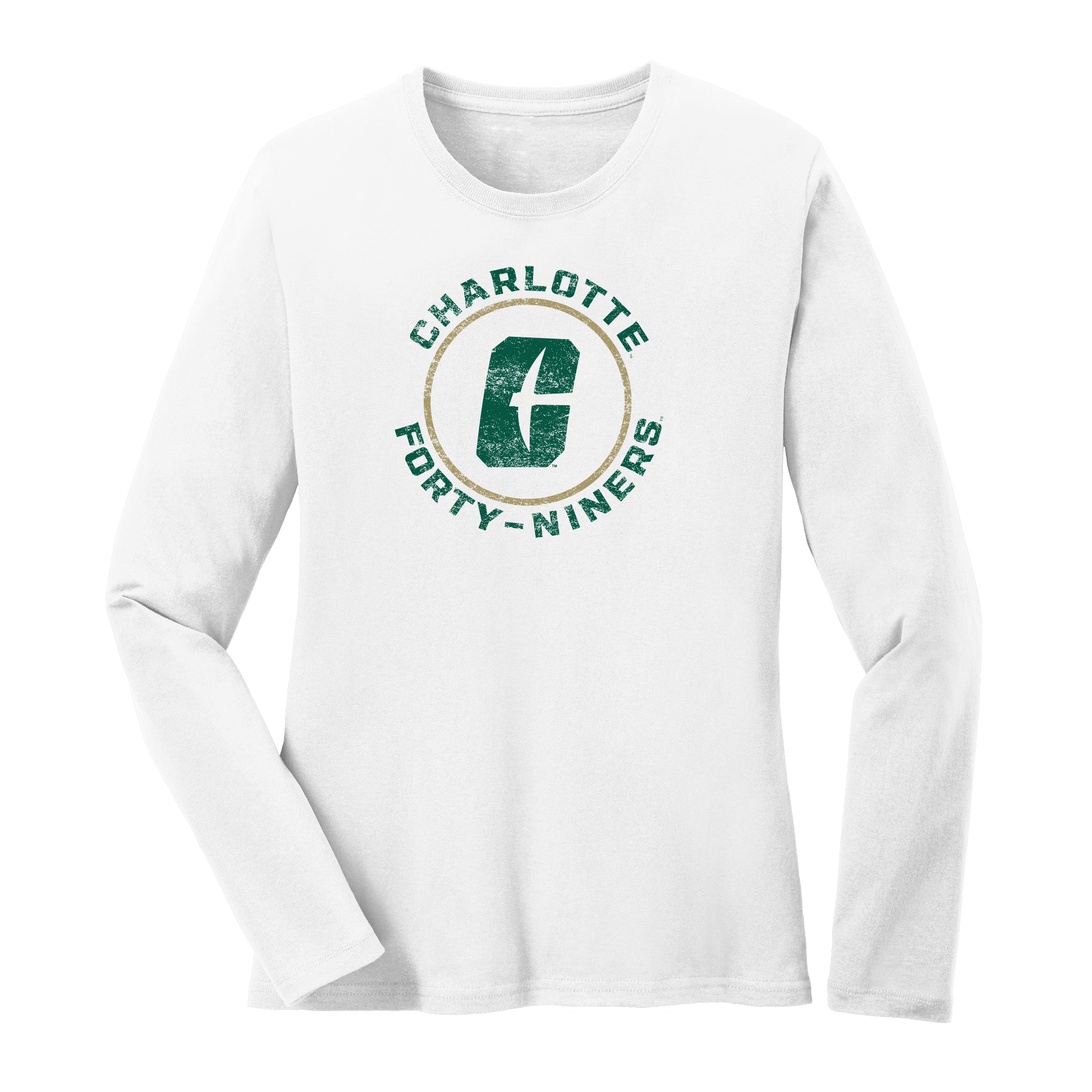 UNC Charlotte Forty-Niners Distressed Circle Logo Women's Long Sleeve T Shirt - White