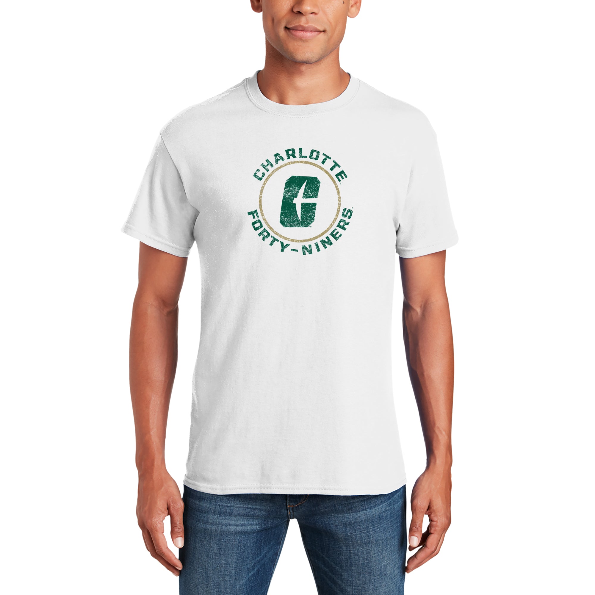 UNC Charlotte Forty-Niners Distressed Circle Logo Short Sleeve T Shirt - White