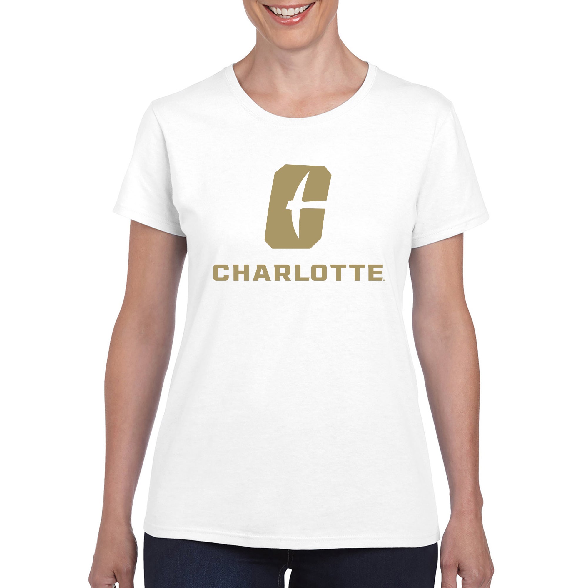 UNC Charlotte Forty-Niners Primary Logo Women's Short Sleeve T Shirt - White