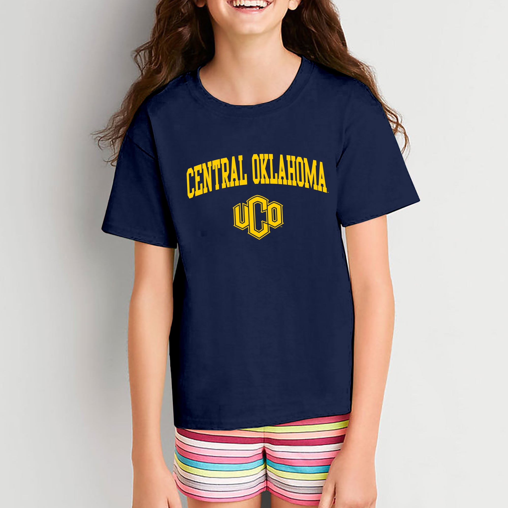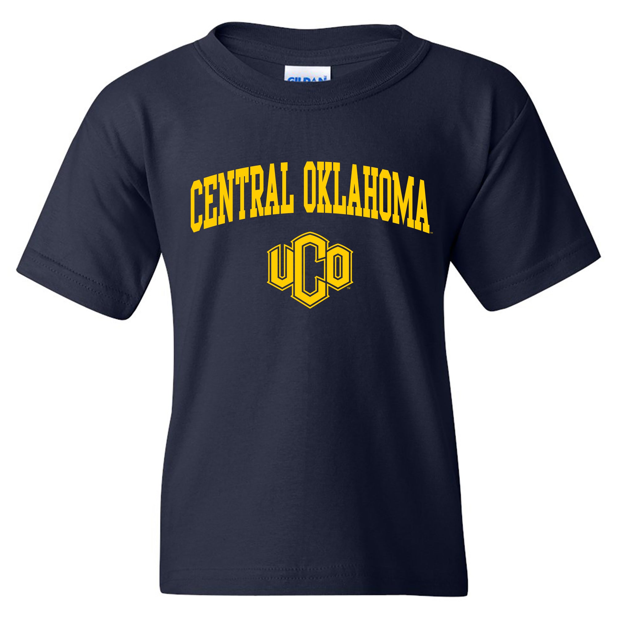 Central Oklahoma University Bronchos Arch Logo Youth T Shirt - Navy