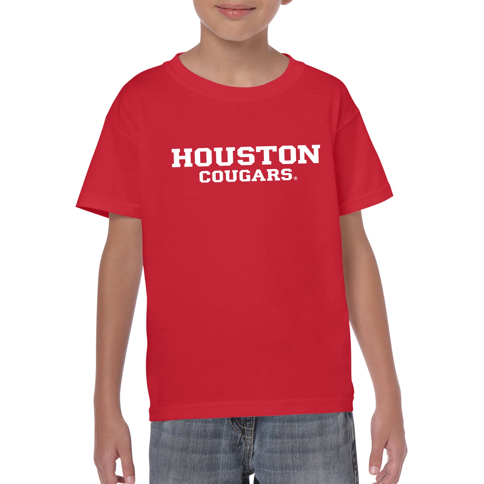University of Houston Cougars Basic Block Youth Short Sleeve T Shirt - Red
