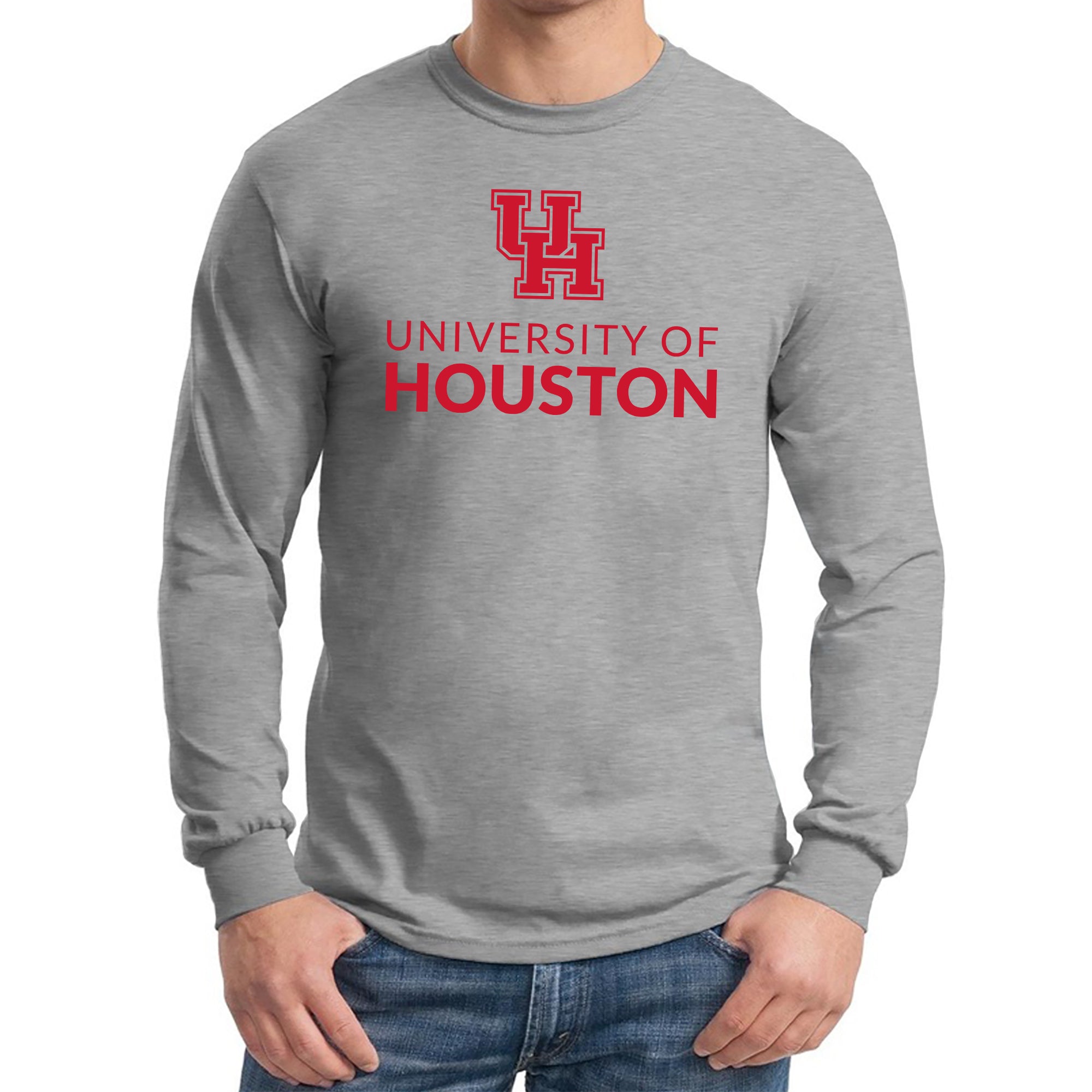 University of Houston Cougars Institutional Logo Long Sleeve T Shirt - Sport Grey