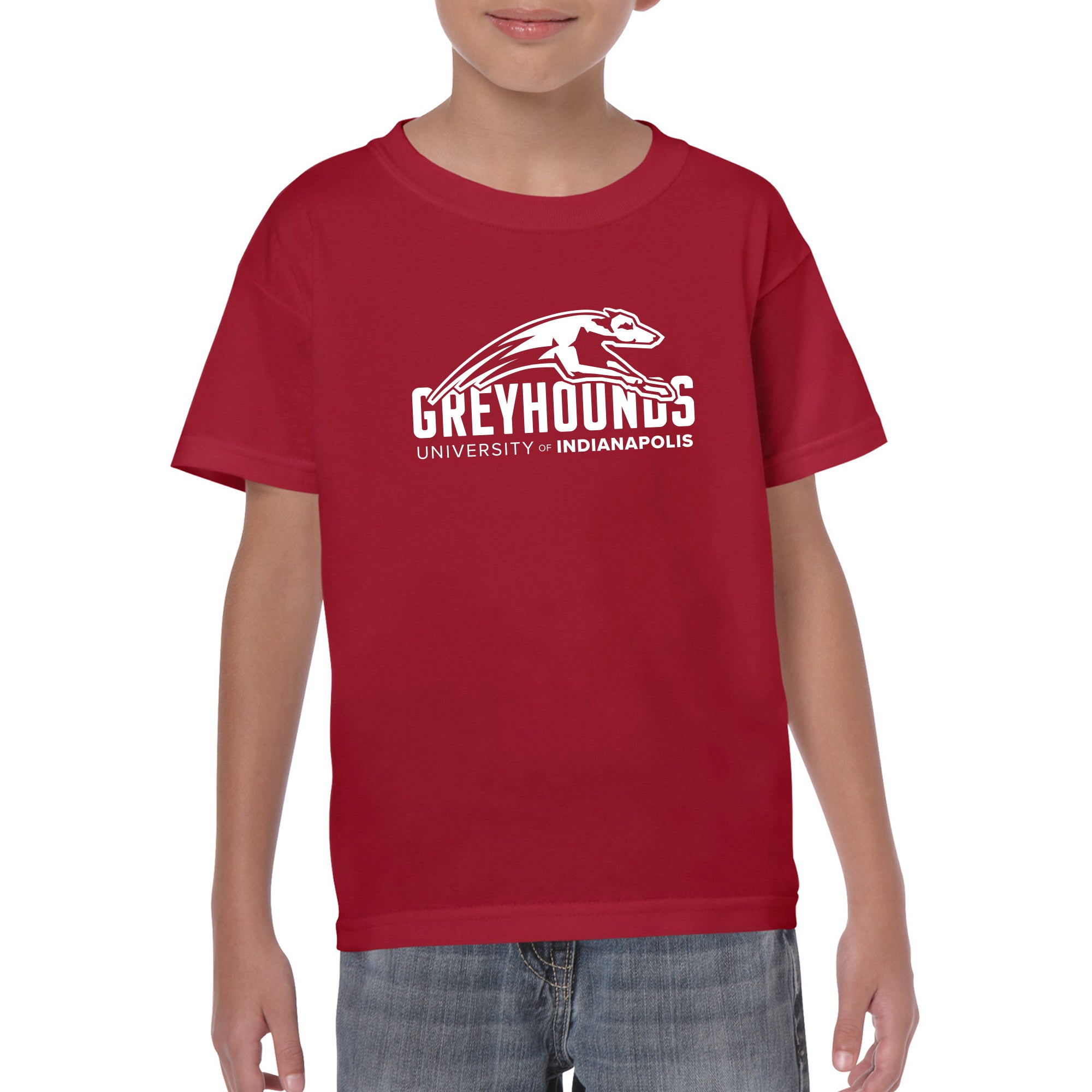 University of Indianapolis Greyhounds Primary Logo Cotton Youth T-Shirt - Cardinal