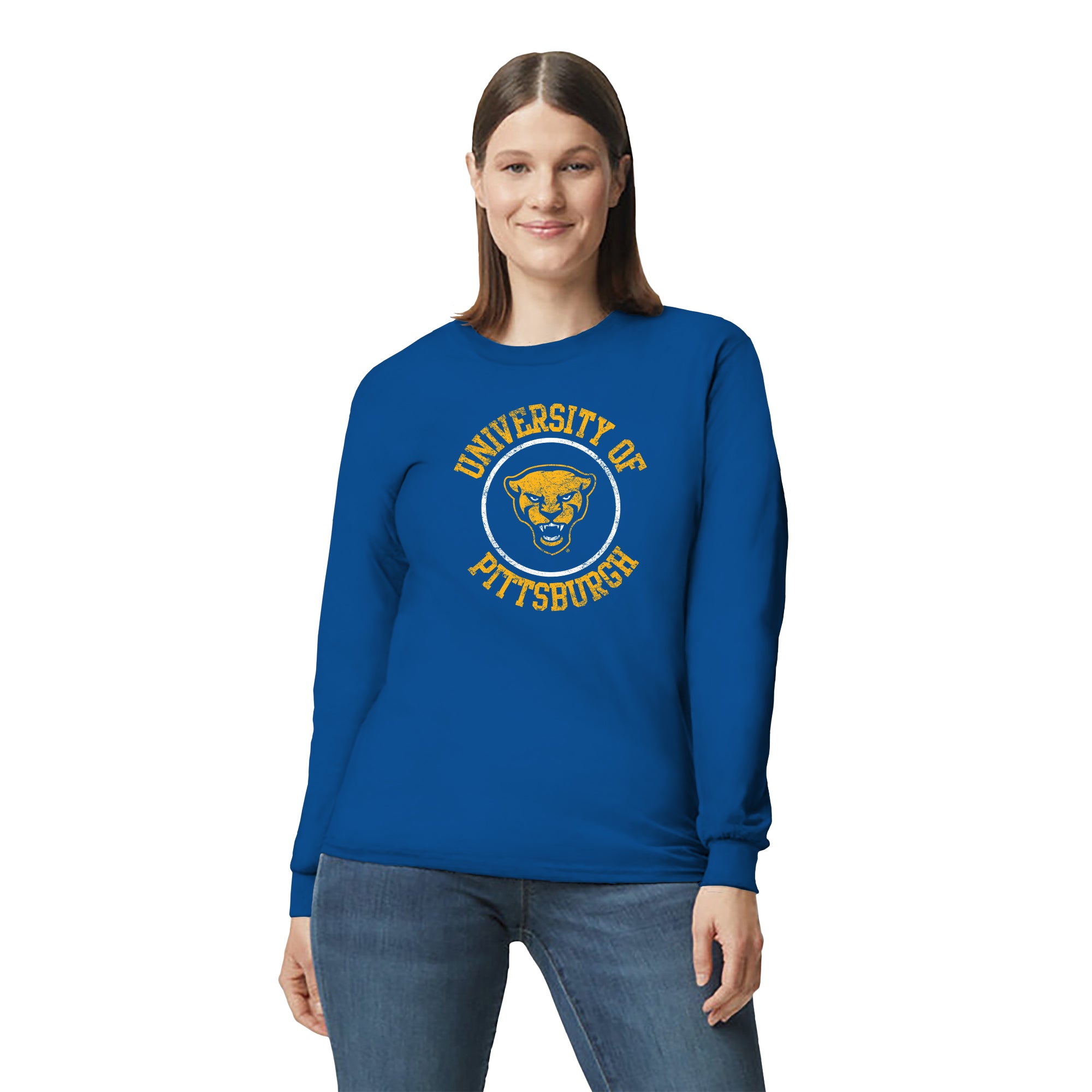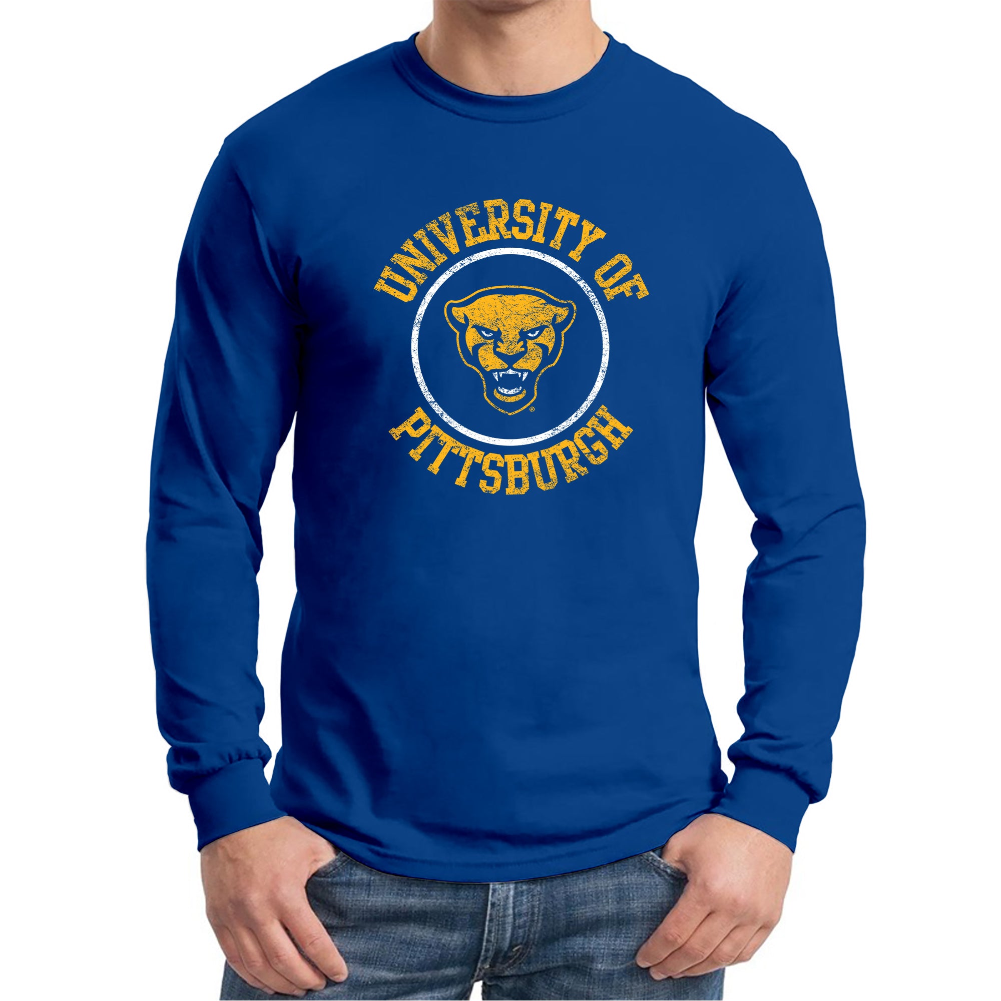 Pittsburgh Panthers Distressed Circle Logo Long Sleeve T-Shirt - Royal