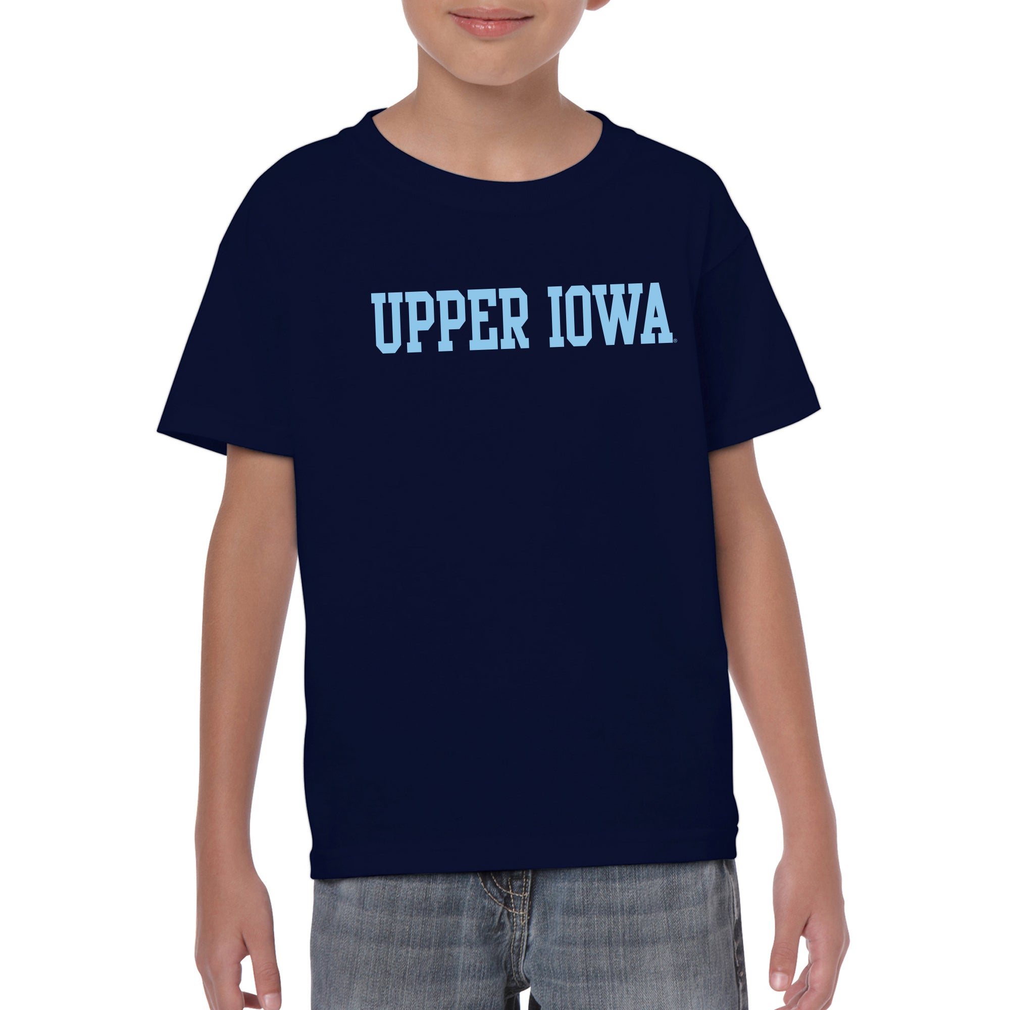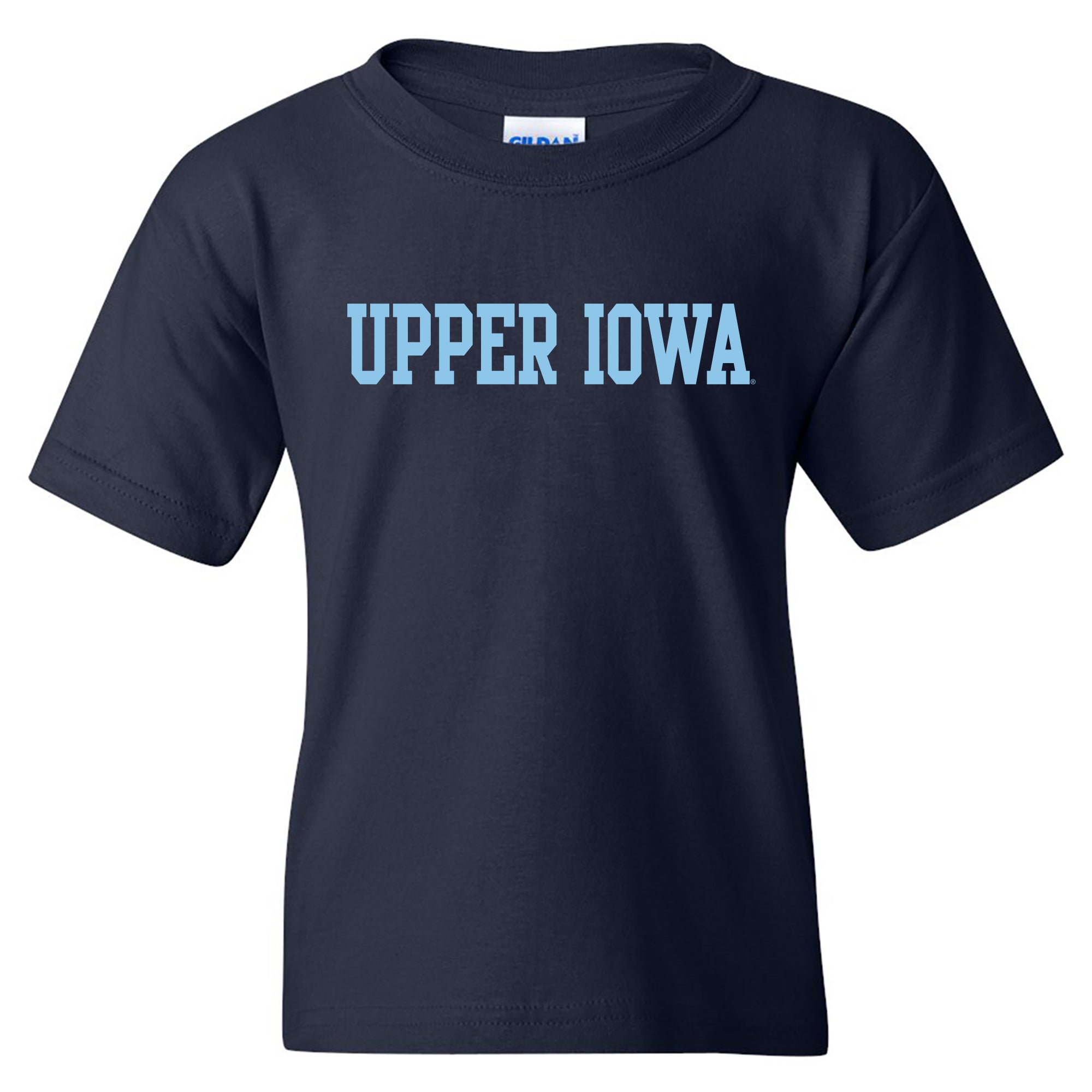 Upper Iowa University Peacocks Basic Block Heavy Cotton Youth Short Sleeve T Shirt - Navy