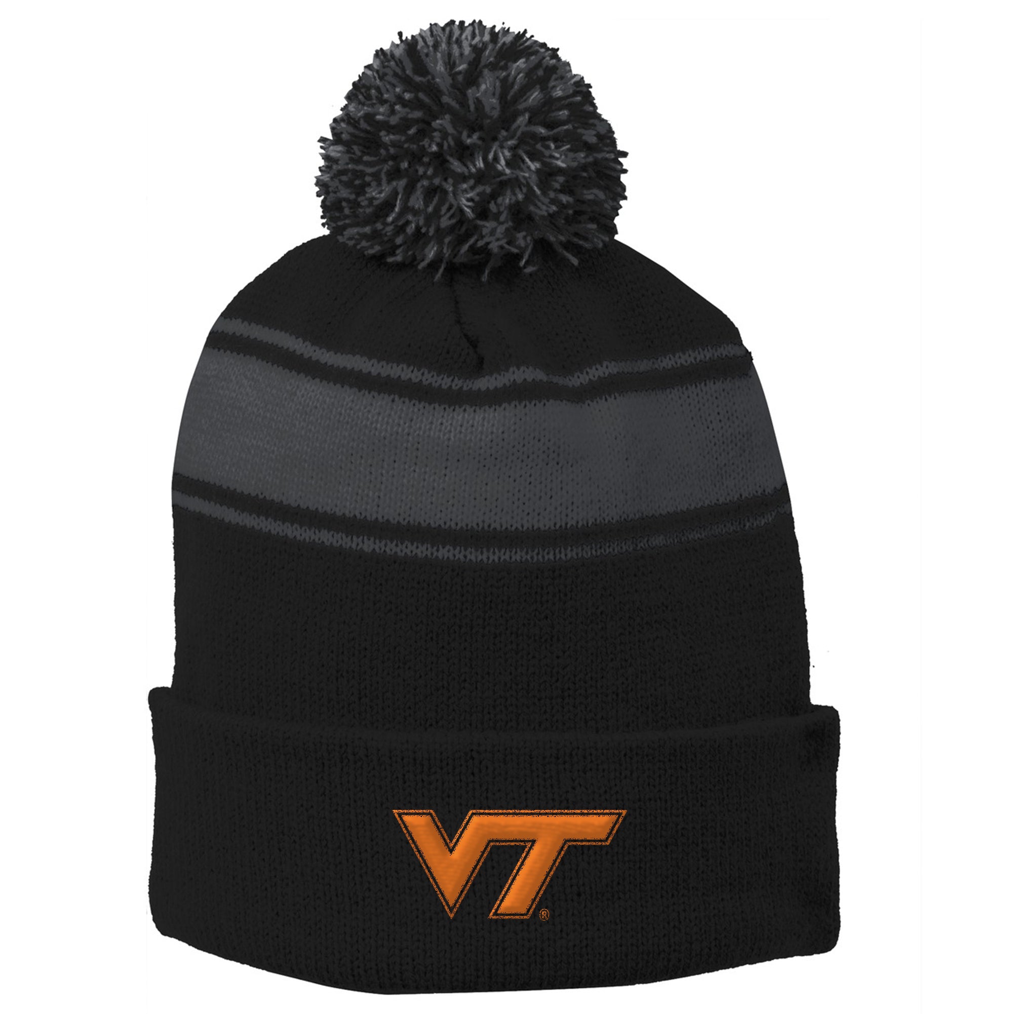 - OFFICIALLY LICENSED Products include an official UGP and collegiate licensed hologram tag or sticker. Show your Virginia Tech Pride in this great Licensed Stripe Pom Pom Beanie!