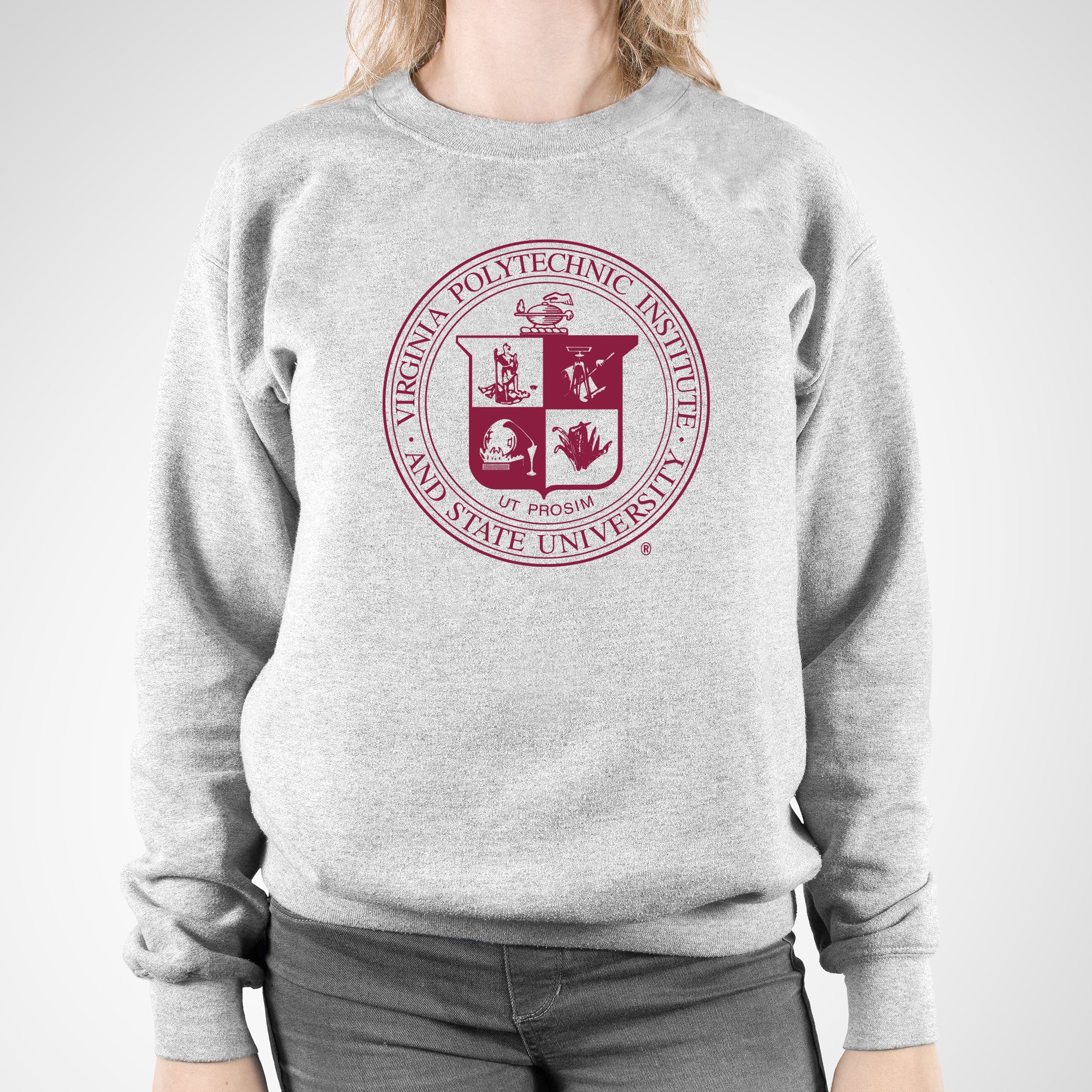 Virginia Tech University Seal Crewneck Sweatshirt - Sport Grey