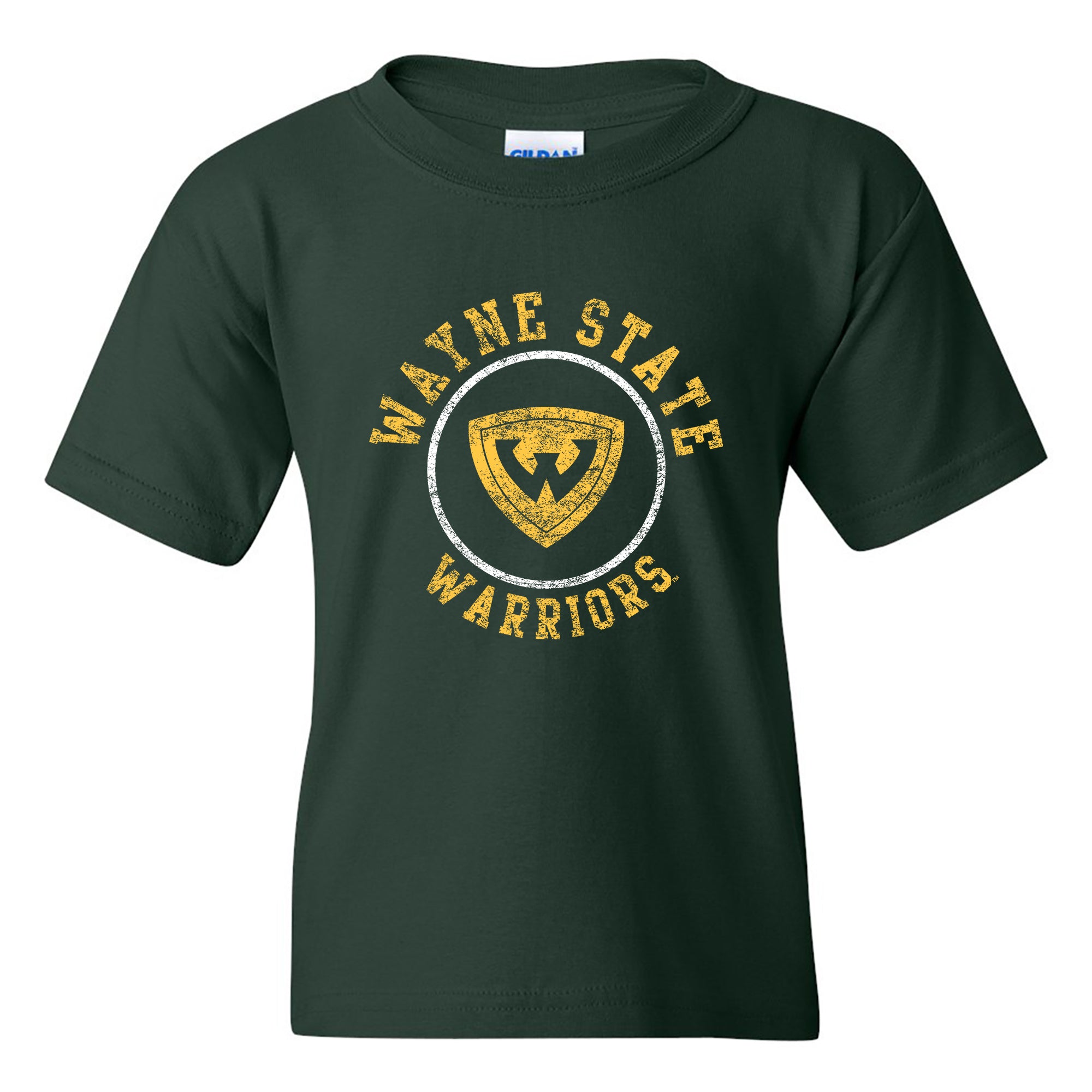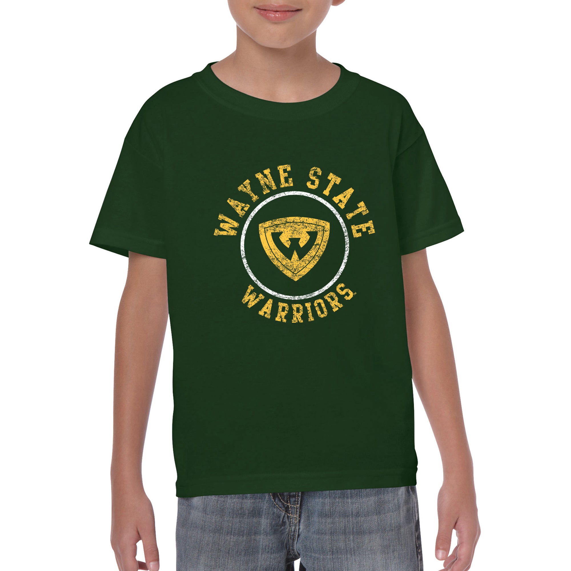 Wayne State University Warriors Distressed Circle Logo Youth Short Sleeve T Shirt - Forest
