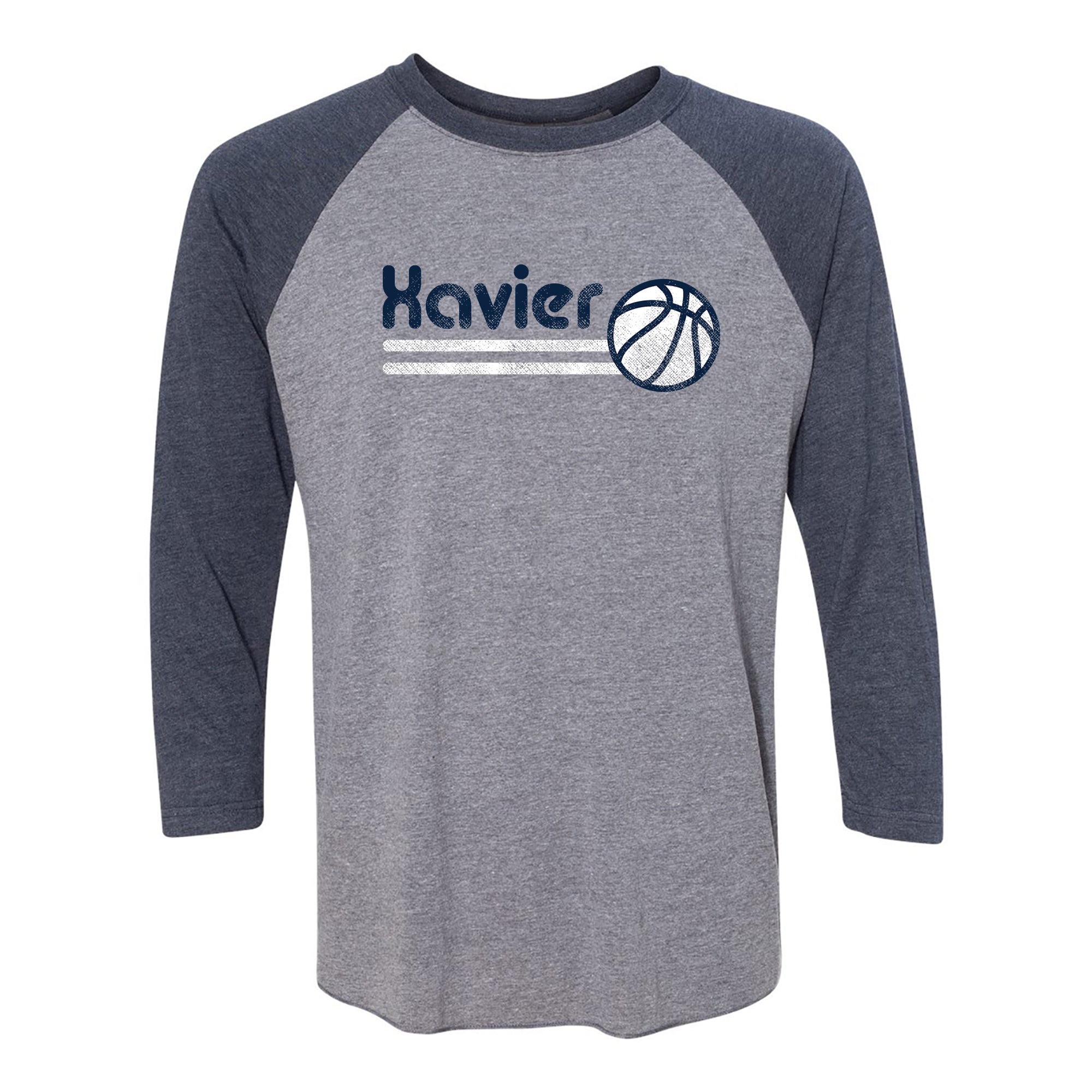 Xavier University Musketeers Basketball Bubble Raglan T Shirt - Premium Heather/Vintage Navy