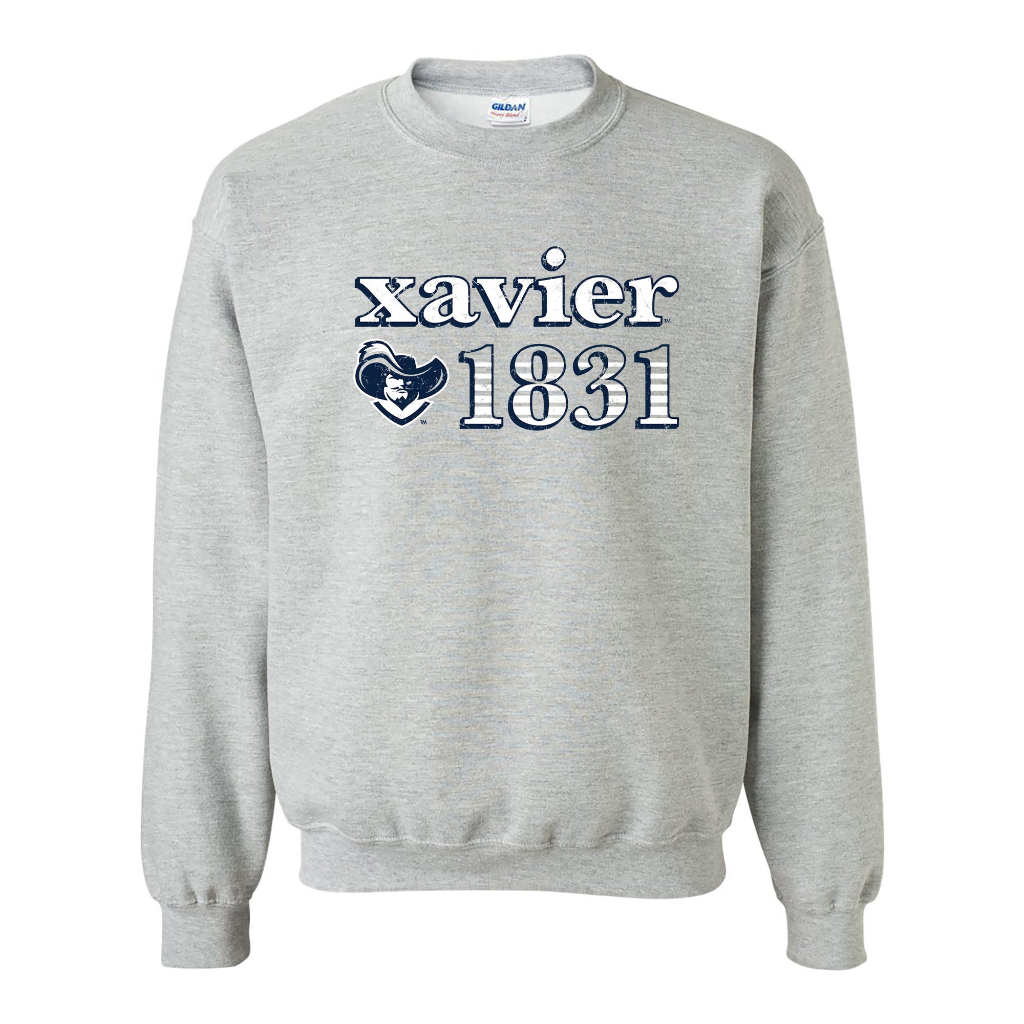 Xavier University Musketeers Throwback Year Stripe Heavy Blend Crewneck - Sport Grey