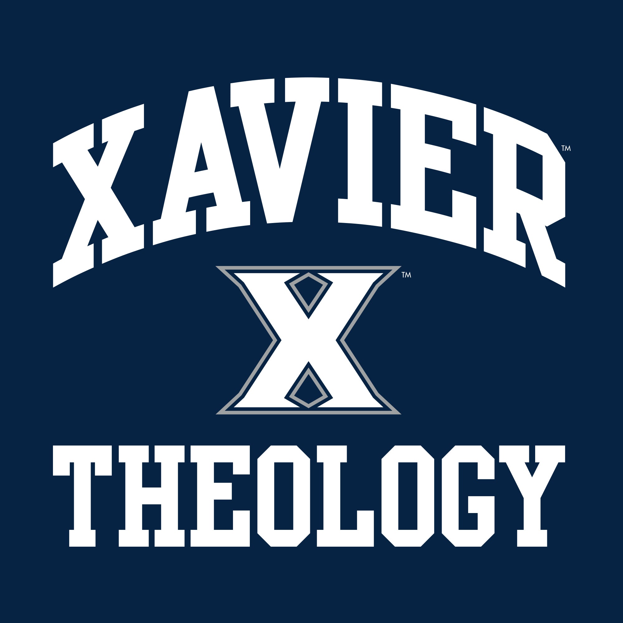 Xavier University Musketeers Arch Logo Theology Basic Cotton Short Sleeve T Shirt - Navy