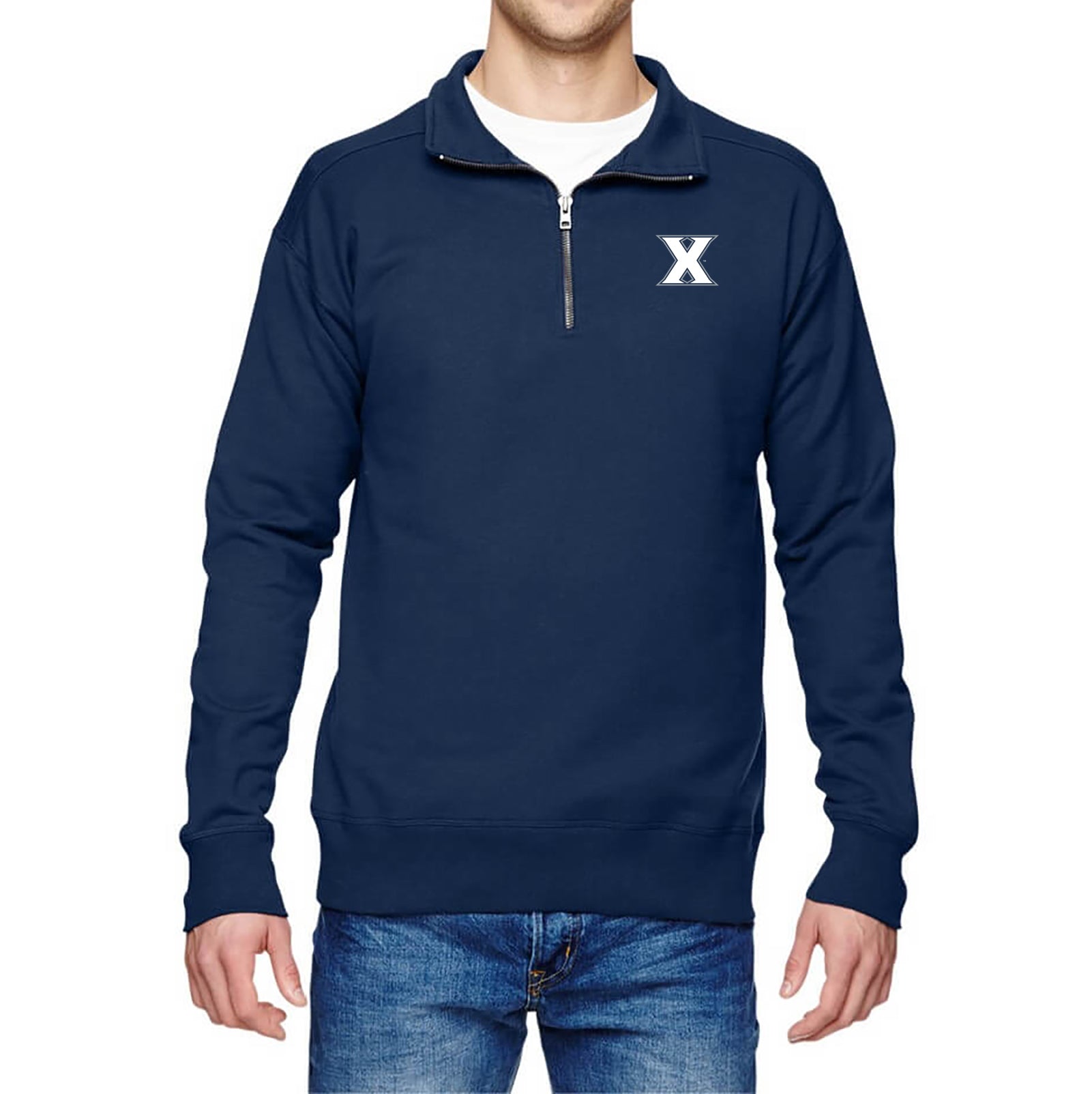 Xavier University Musketeers Primary Left Chest Quarter Zip Sweatshirt- Navy