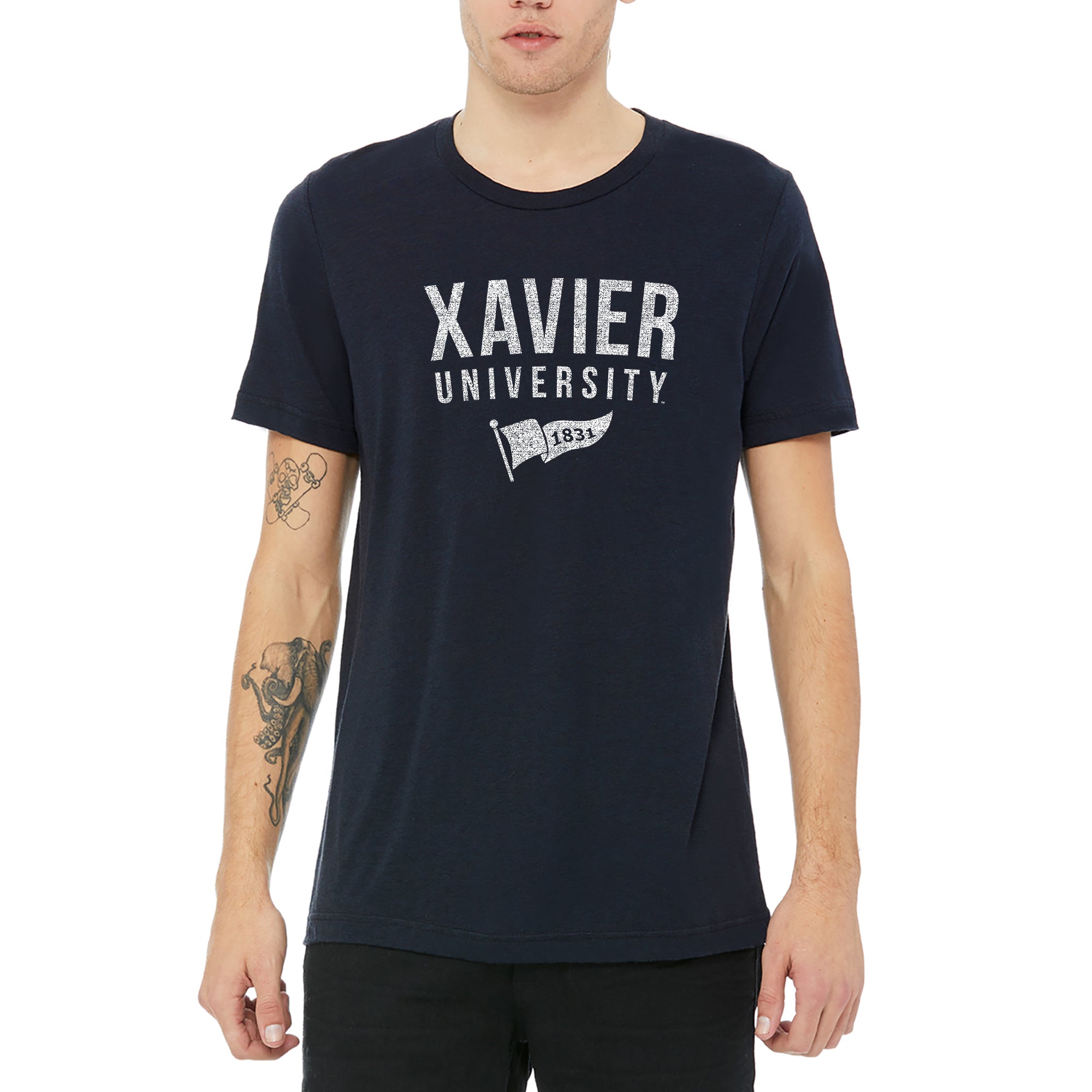 Xavier University Musketeers 1831 Banner Canvas Short Sleeve Triblend T-Shirt - Solid Navy