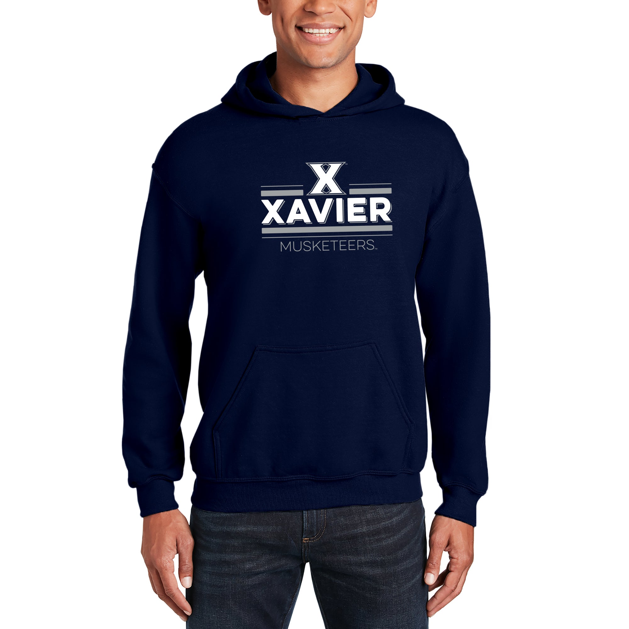 Xavier University Musketeers Double Bar Logo Hoodie - Navy