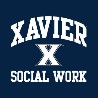 Xavier University Musketeers Arch Logo Social Work Basic Cotton Short Sleeve T Shirt - Navy
