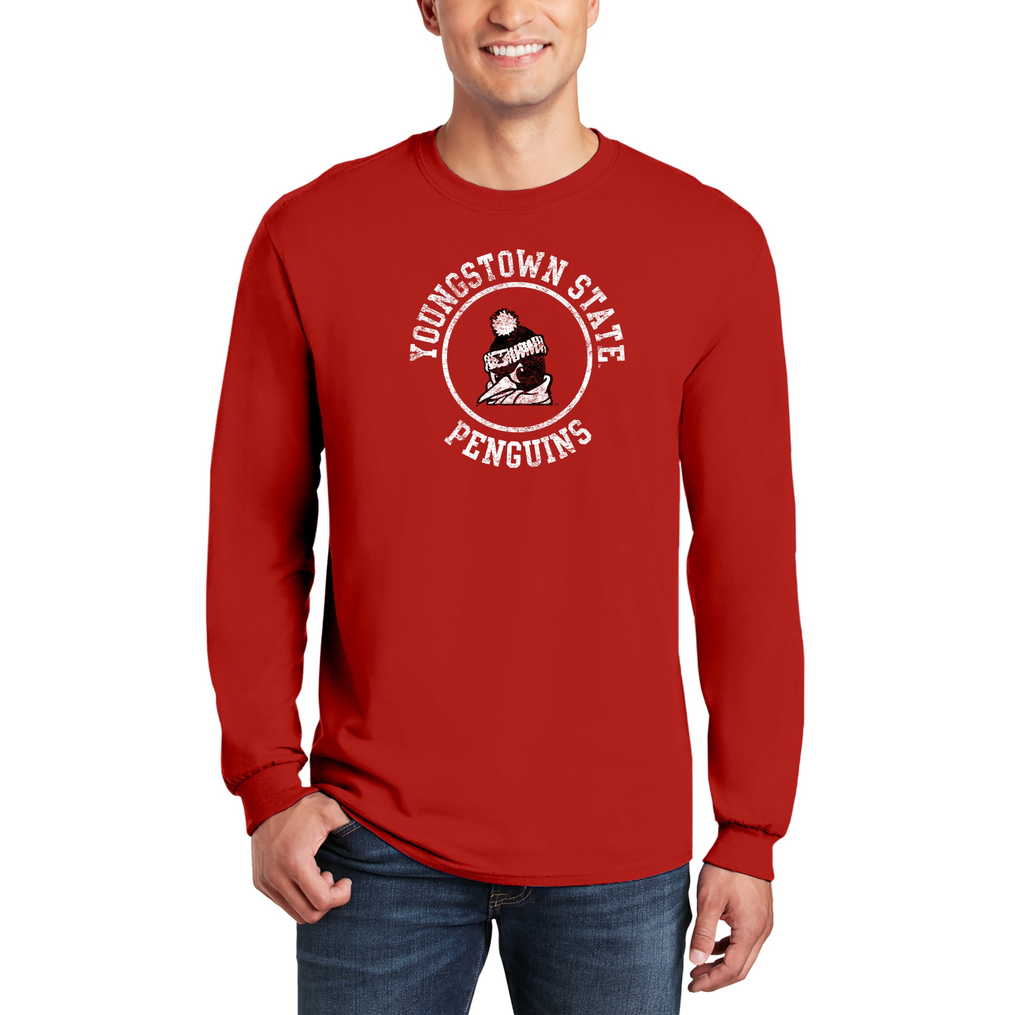 Youngstown Penguins Distressed Circle Logo Long Sleeve - Red