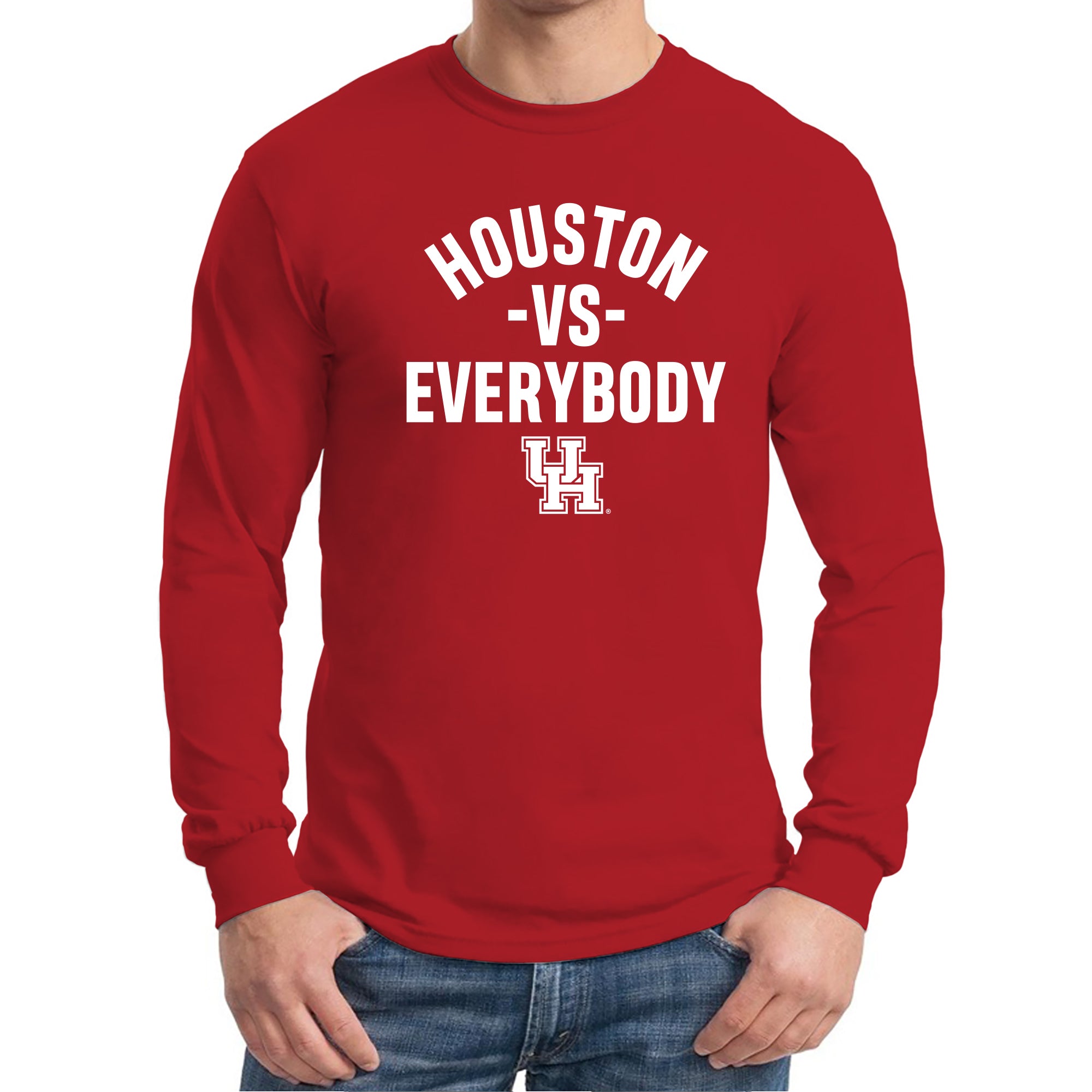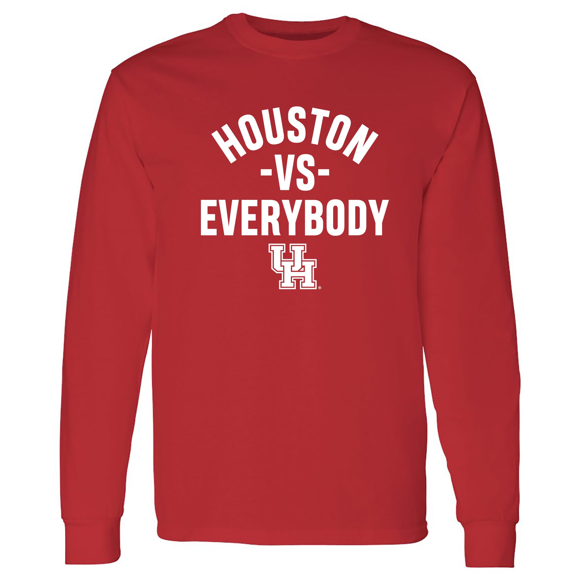 - Show off your style in this great Houston Cougars Versus Everybody Long Sleeve! Whether you are tailgating at a Houston football game, or in the stands cheering on the Cougars Basketball team, show off your Houston Pride in this Long Sleeve. Great for Christmas gifts, birthdays or just to treat yourself to a great graphic tee.