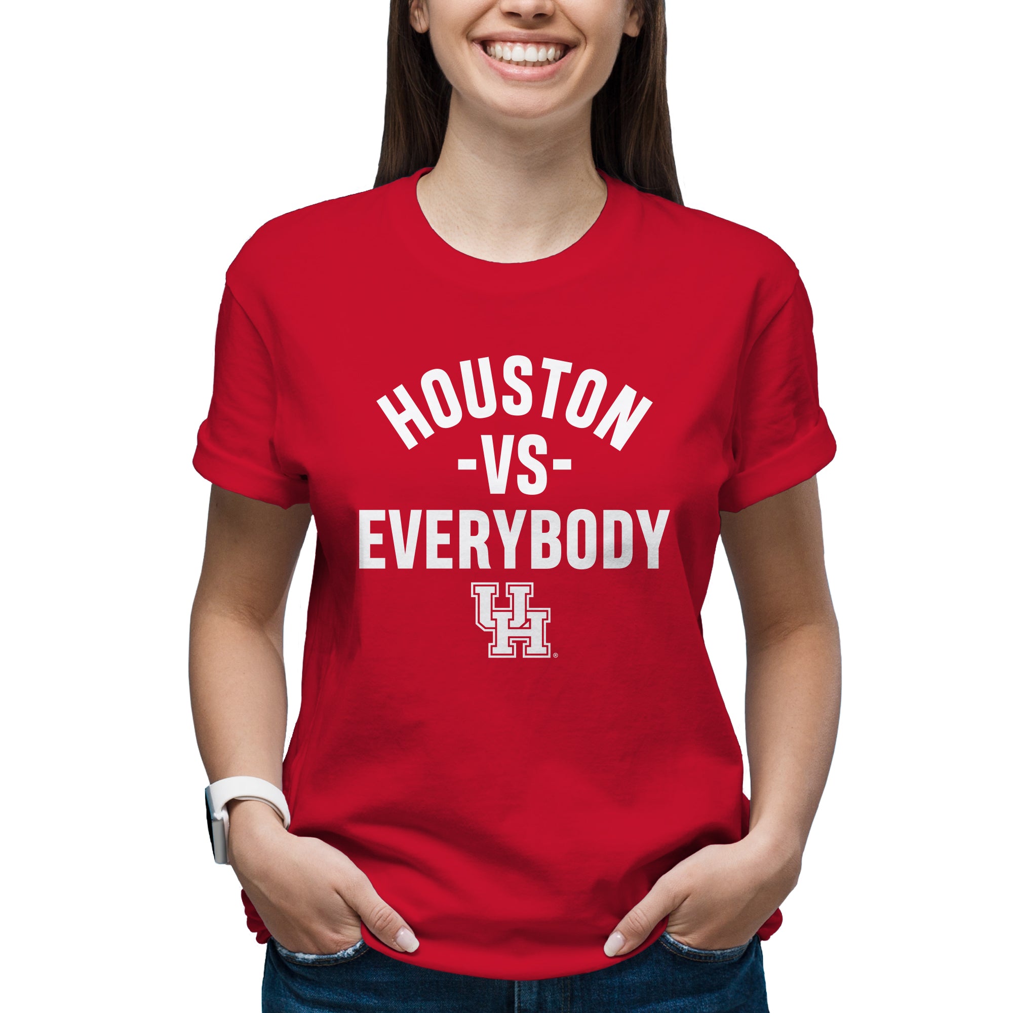 - Show off your style in this great Houston Cougars Versus Everybody T-Shirt! Whether you are tailgating at a Houston football game, or in the stands cheering on the Cougars Basketball team, show off your Houston Pride in this T-Shirt. Great for Christmas gifts, birthdays or just to treat yourself to a great graphic tee.