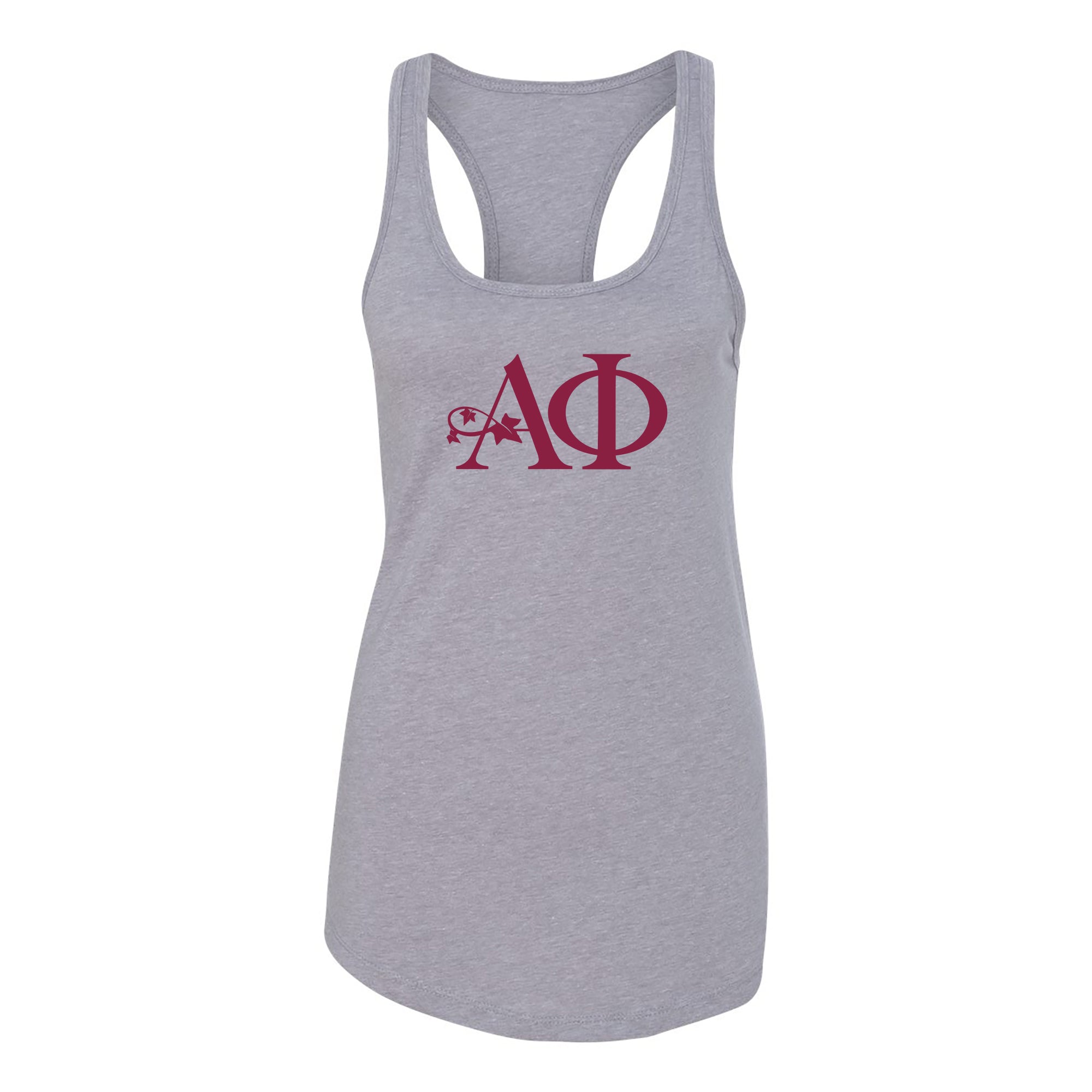 Alpha Phi Greek Letter Block Racerback Tank - Heather Grey