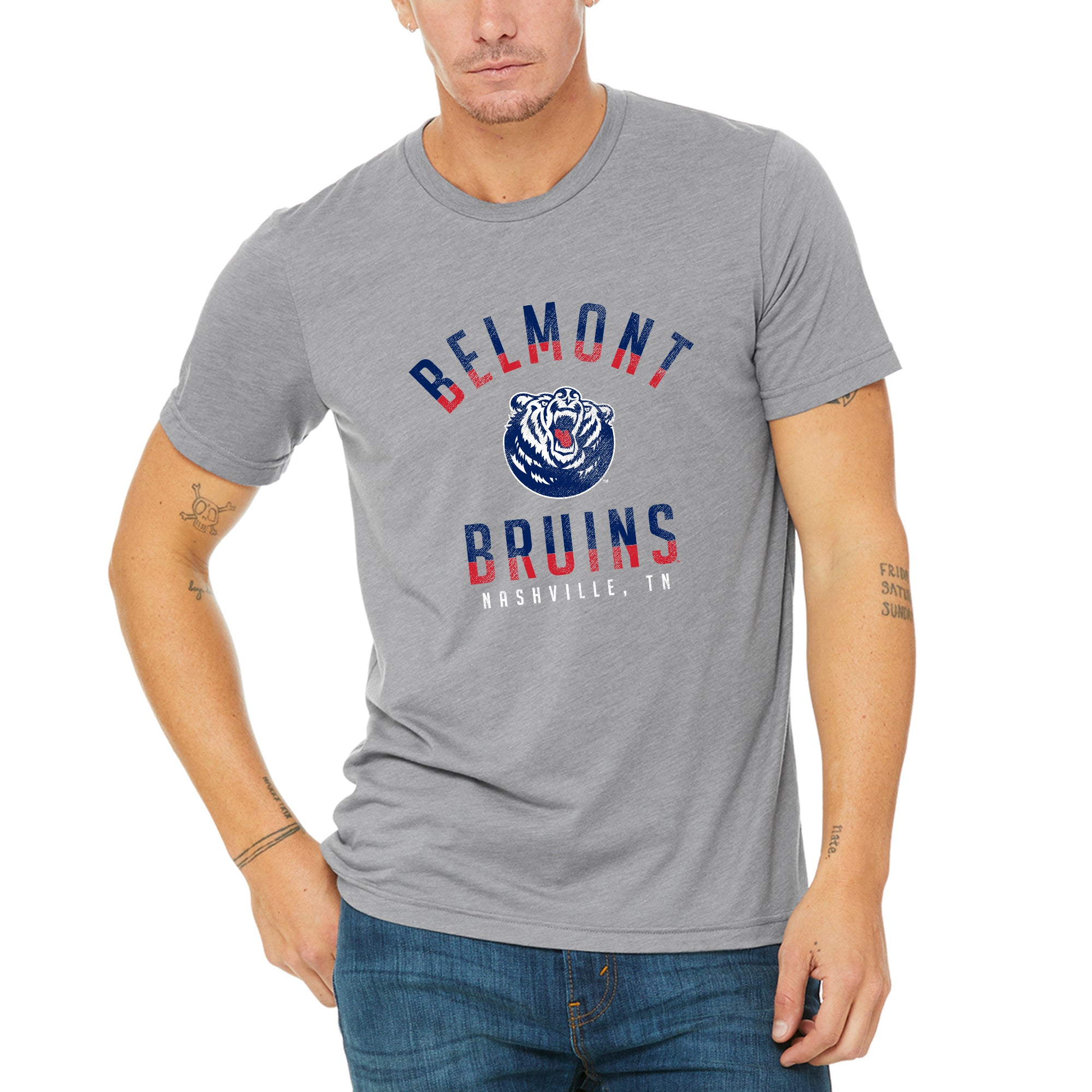 Belmont University Bruins Division Arch Canvas Triblend Short Sleeve T Shirt - Athletic Grey