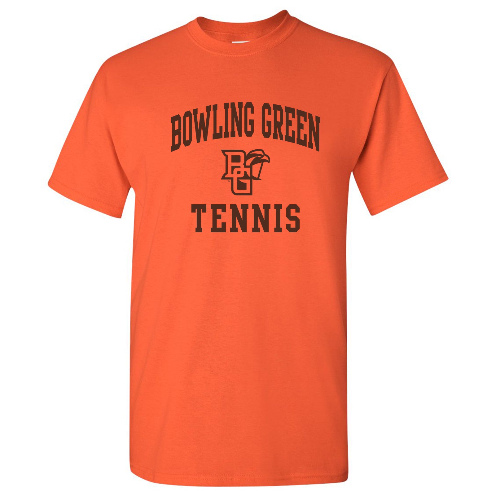 Bowling Green State University Falcons Arch Logo Tennis Basic Cotton Short Sleeve T Shirt - Orange
