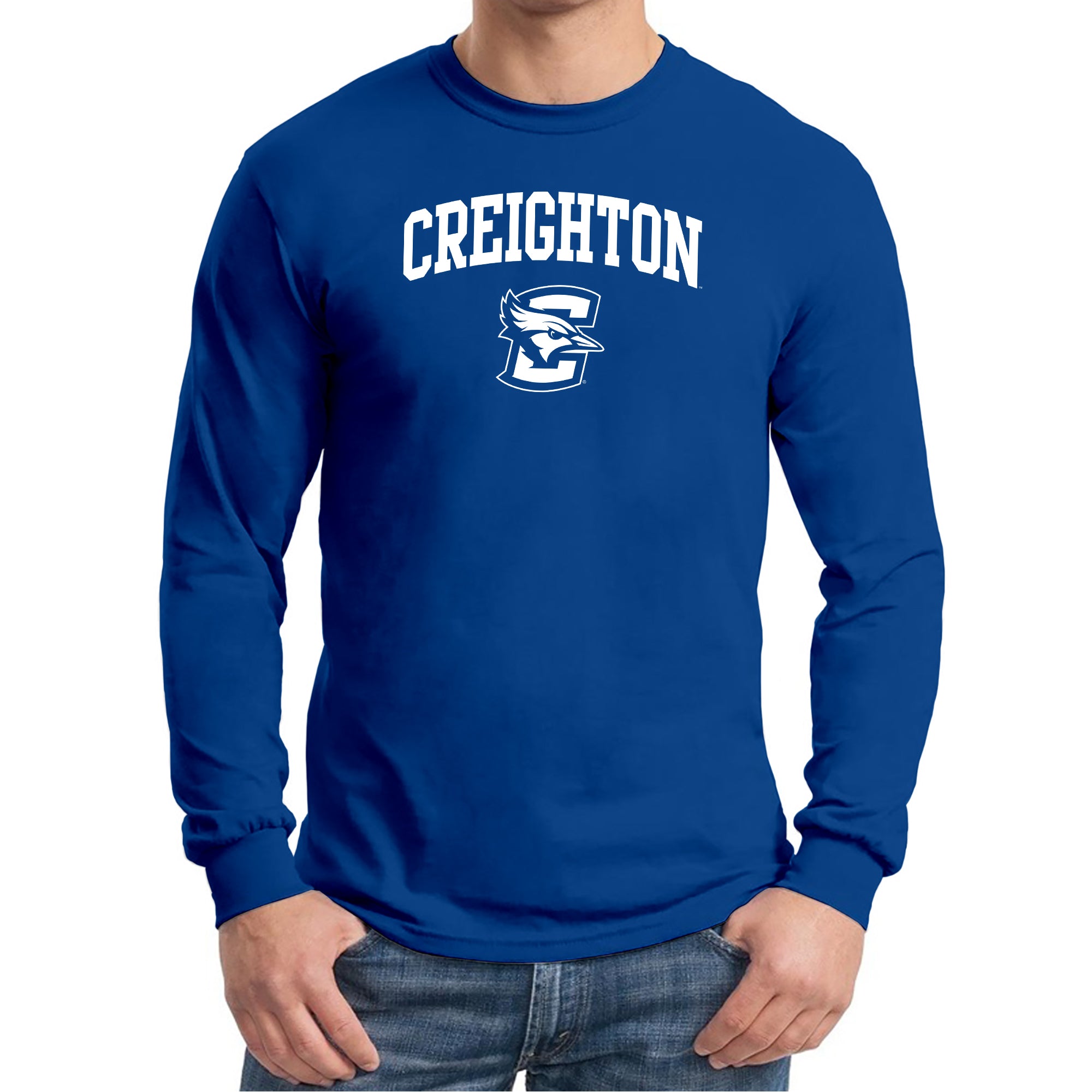 Creighton University Bluejays Arch Logo Long Sleeve T Shirt - Royal